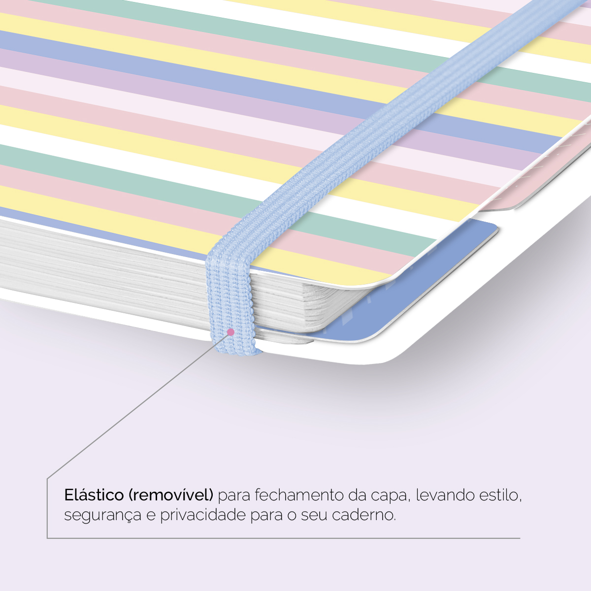 O miolo conta com 60 folhas pautadas decoradas em papel sulfite 90g, (aquele papel mais “grossinho”) para que você use e abuse das suas canetas especiais e 20 folhas em branco, ideais para explorar seu lado mais criativo.