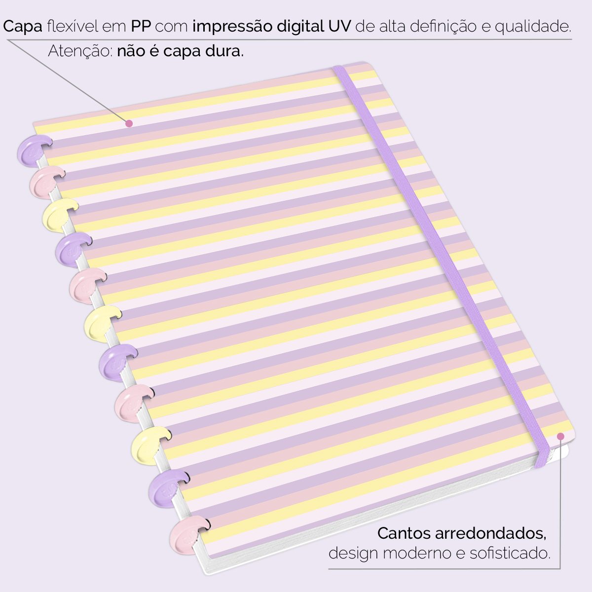 A capa é feita em PP com impressão digital UV de alta definição, acompanha 4 lindas divisórias, que você pode colocar em qualquer local do caderno, funcionando como o guia perfeito para sua organização.