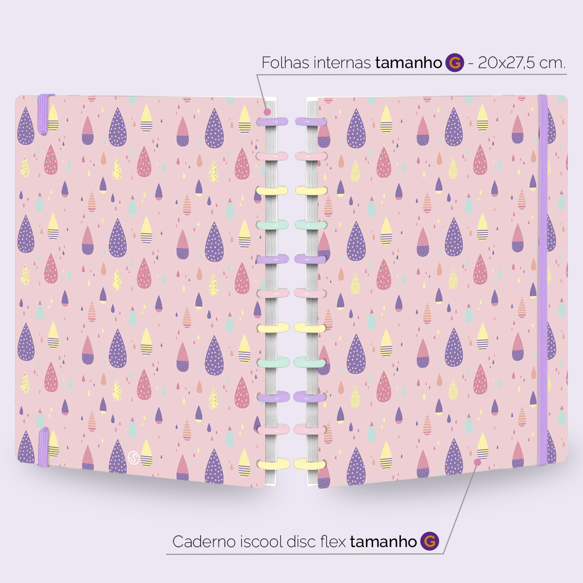 Além de tudo isso, o ISCOOL DISC FLEX, conta com detalhezinhos que fazem toda diferença: elástico removível para fechamento da capa, muito mais estilo e privacidade para suas anotações; bolsa plástica para guardar seus rascunhos, referências, lembretes, documentos e uma cartela de adesivos incríveis, para que você possa personalizar seu caderno do seu jeitinho!