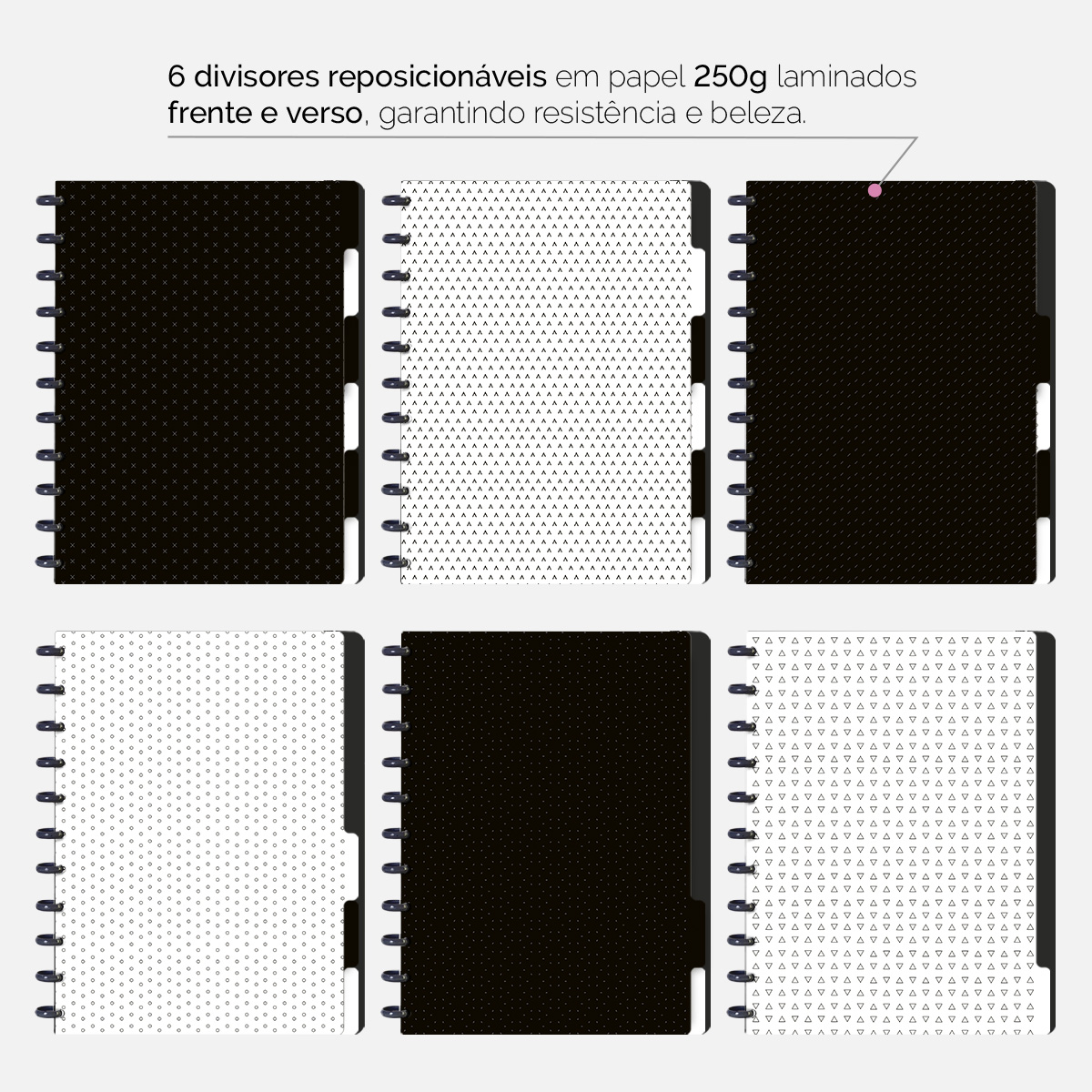 6 divisores laminados (frente e verso) em papel 250g.