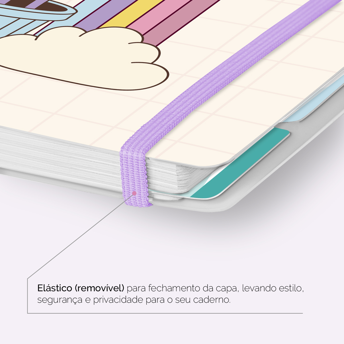 O miolo conta com 60 folhas pautadas decoradas em papel sulfite 90g, (aquele papel mais “grossinho”) para que você use e abuse das suas canetas especiais e 20 folhas em branco, ideais para explorar seu lado mais criativo.