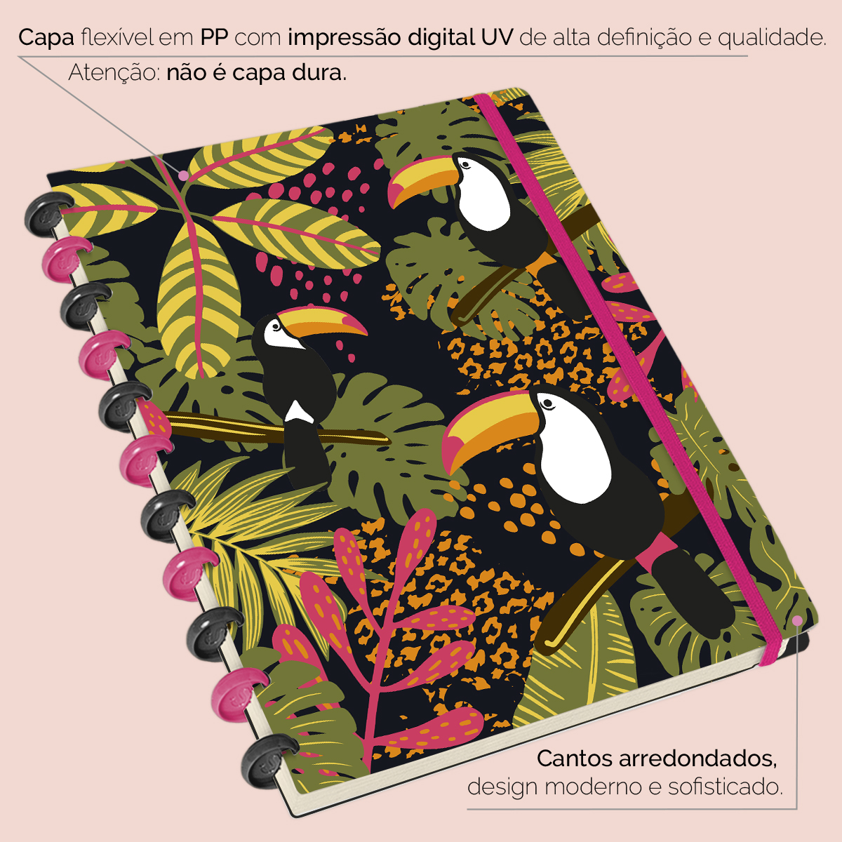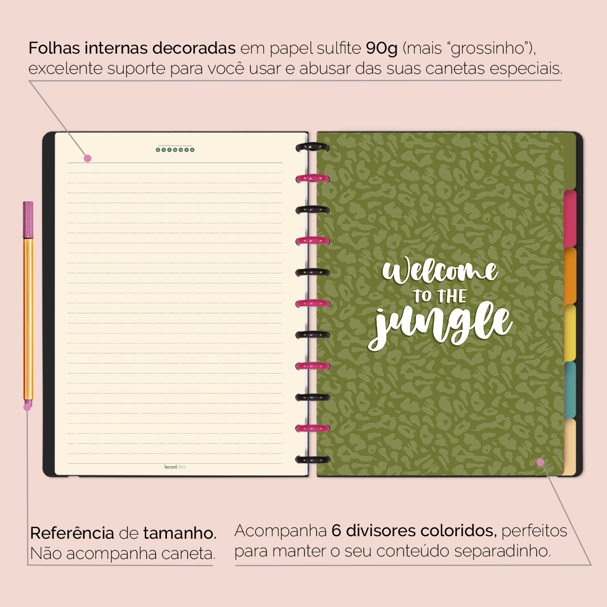 A capa é feita em PP com impressão digital UV de alta definição, acompanha 4 lindas divisórias, que você pode colocar em qualquer local do caderno, funcionando como o guia perfeito para sua organização.