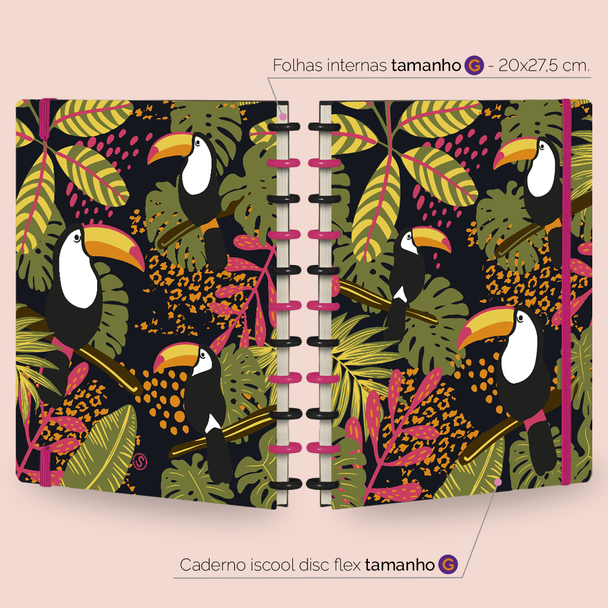 Um caderno totalmente customizável, no qual todos os elementos são reposicionáveis. Você pode montá-lo como preferir, deixando rolar solta toda sua criatividade.