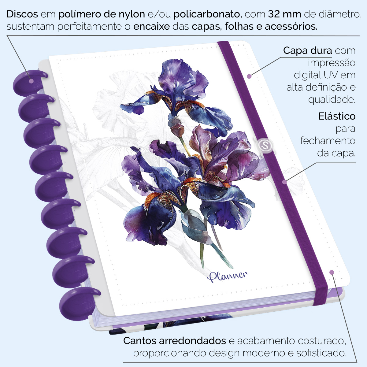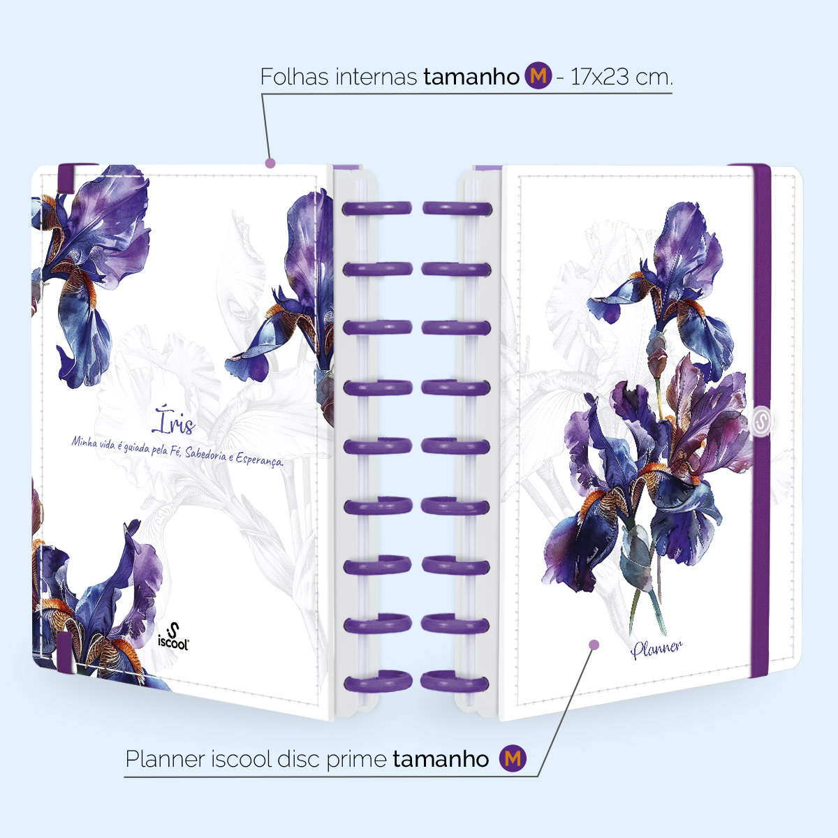 Iscool Disc Planner Permanente Floriografia Íris Branco