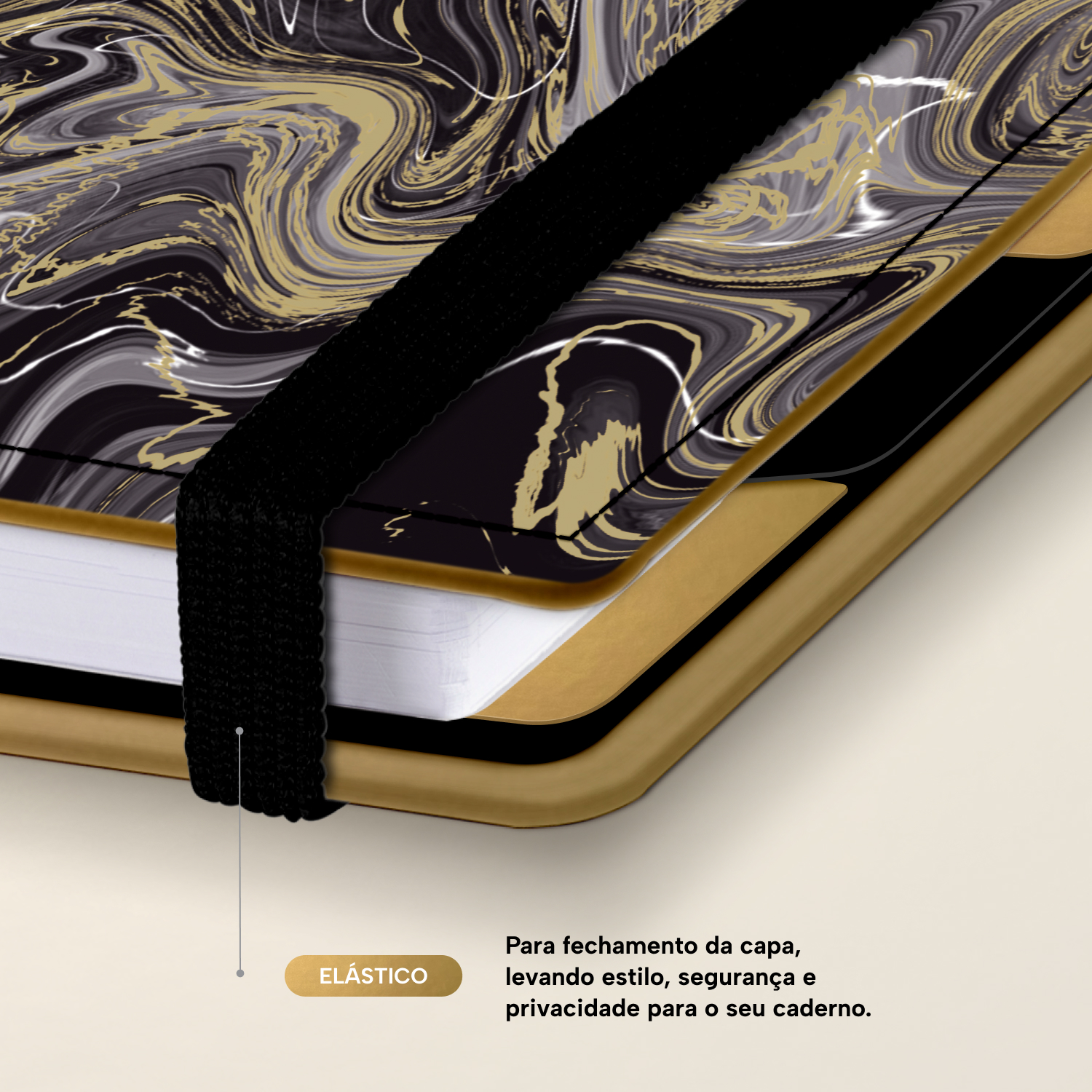 Elástico para fechamento da capa do caderno.