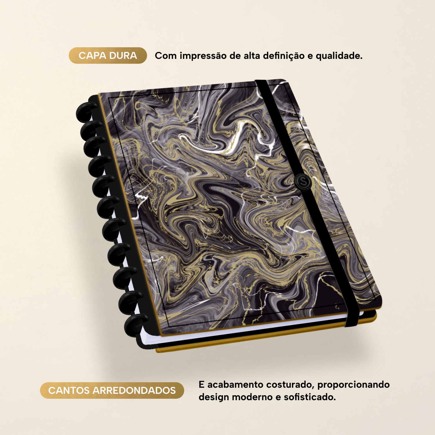 A capa é dura, com impressão digital de alta definição, e acompanha 6 lindas divisórias que você pode colocar em qualquer local do caderno, funcionando como o guia perfeito para sua organização.