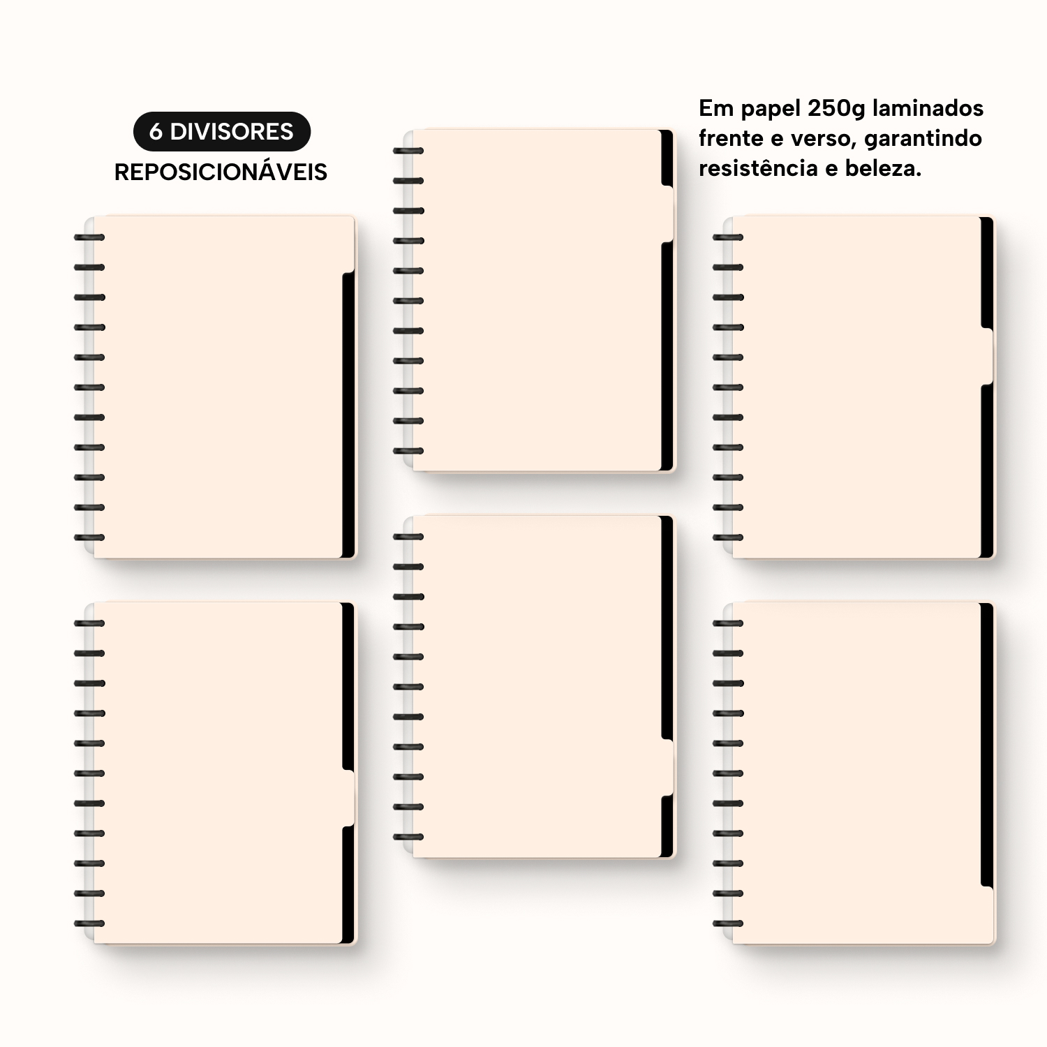 A capa é dura, com impressão digital de alta definição, e acompanha lindas divisórias que você pode colocar em qualquer local do caderno, funcionando como o guia perfeito para sua organização.