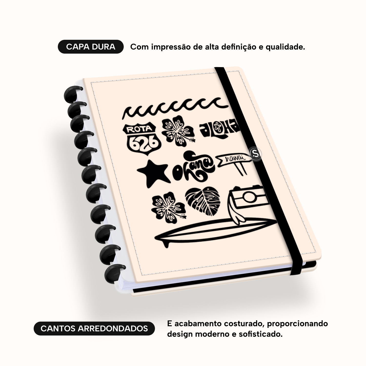 Um caderno totalmente customizável, no qual os elementos são reposicionáveis. Você pode montá-lo como preferir, deixando rolar solta toda a sua criatividade.