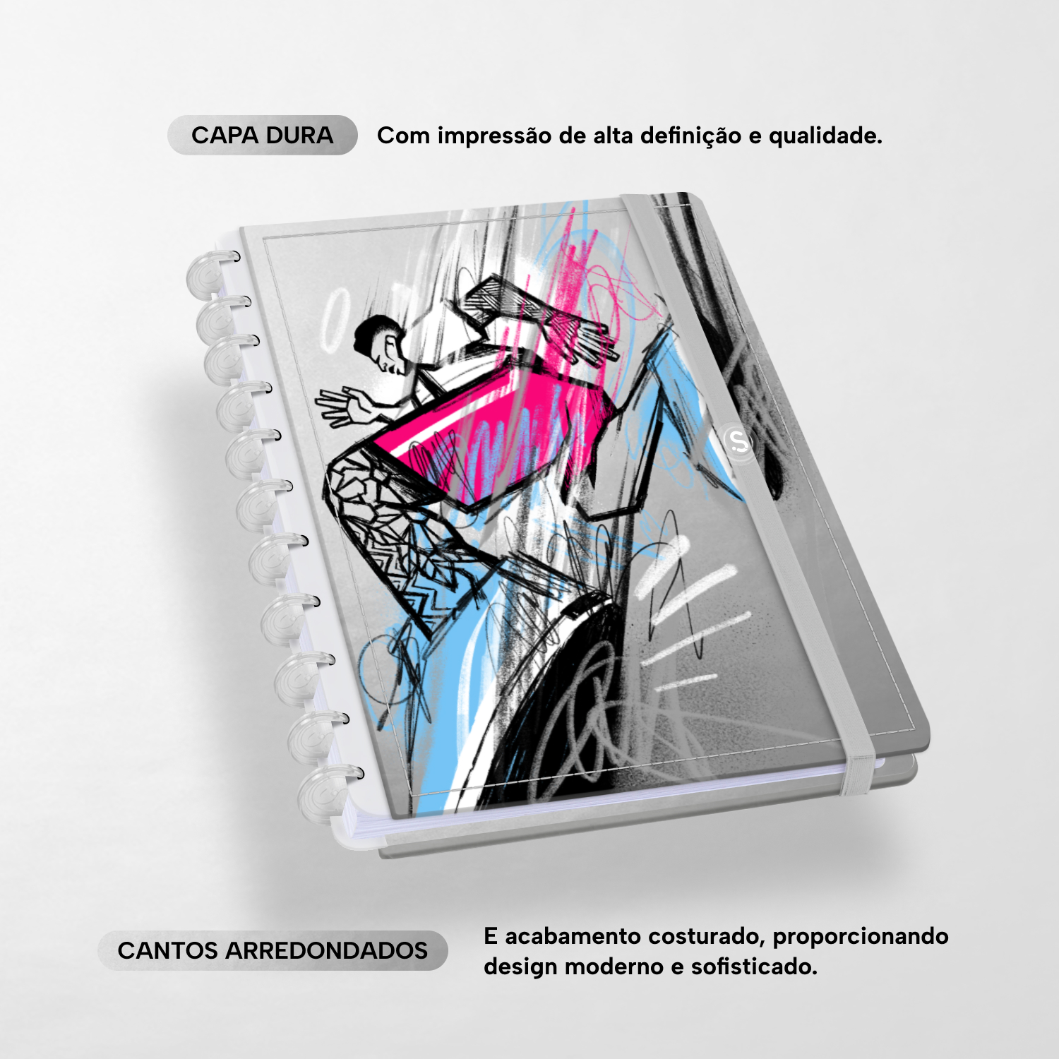 A capa é dura, com impressão digital de alta definição, e acompanha 6 lindas divisórias que você pode colocar em qualquer local do caderno, funcionando como o guia perfeito para sua organização.