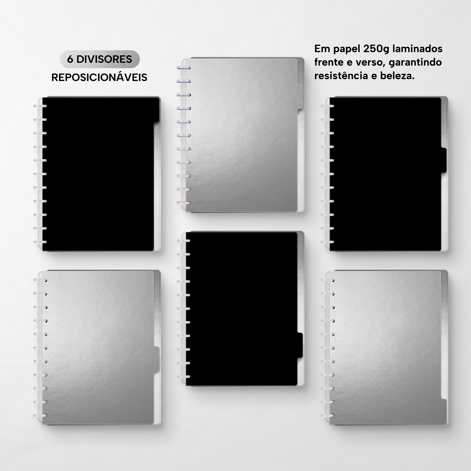 6 divisores laminados (frente e verso) em papel 250g.