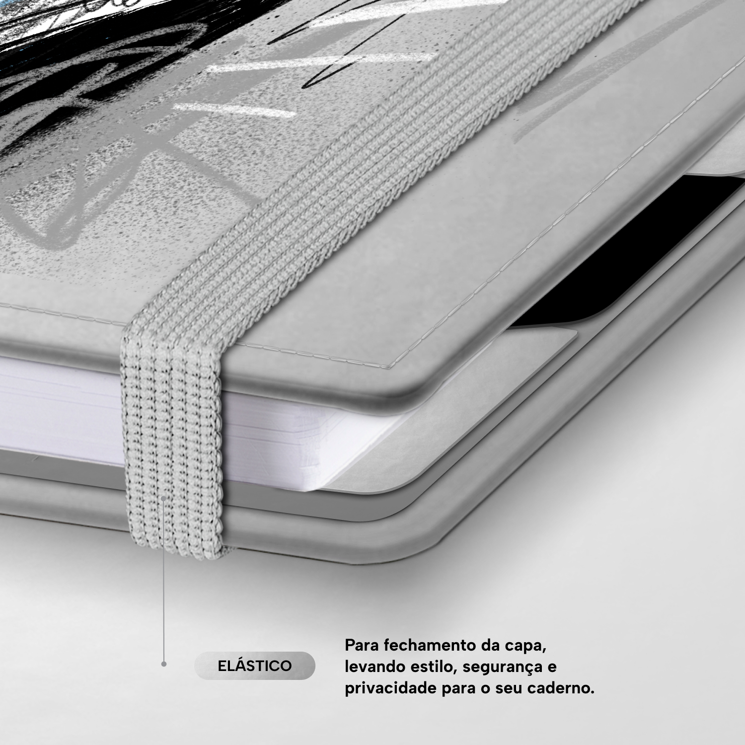 Elástico para fechamento da capa do caderno.