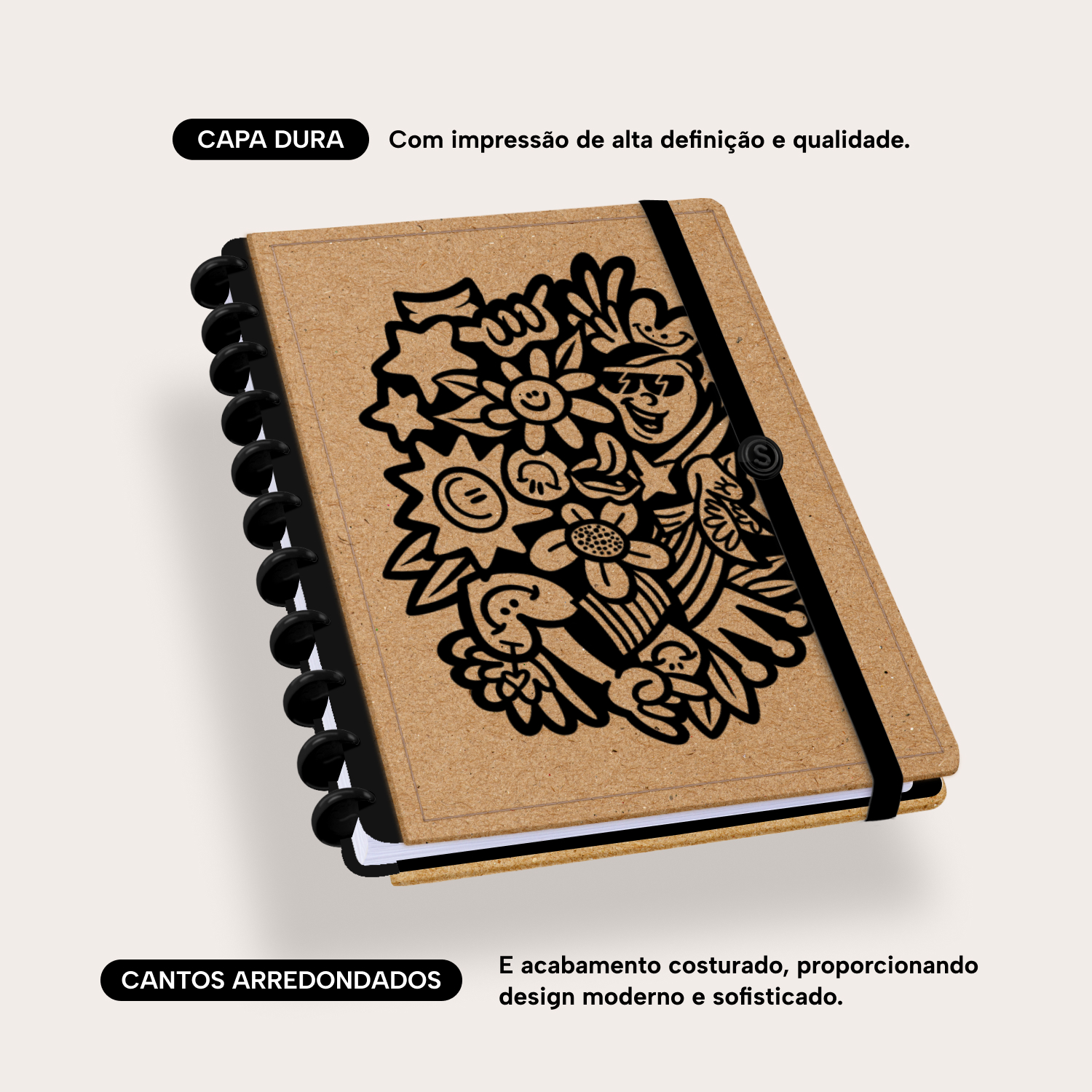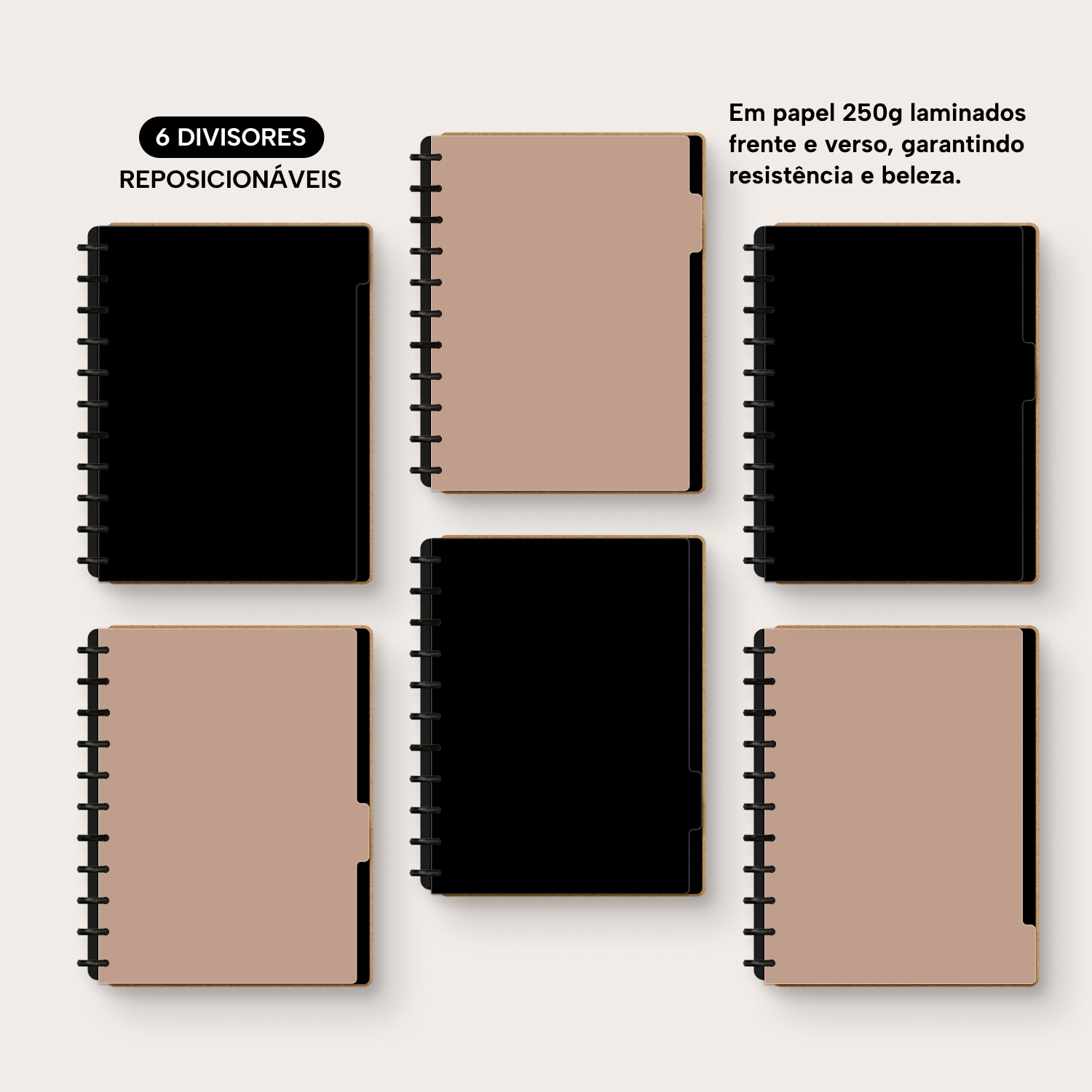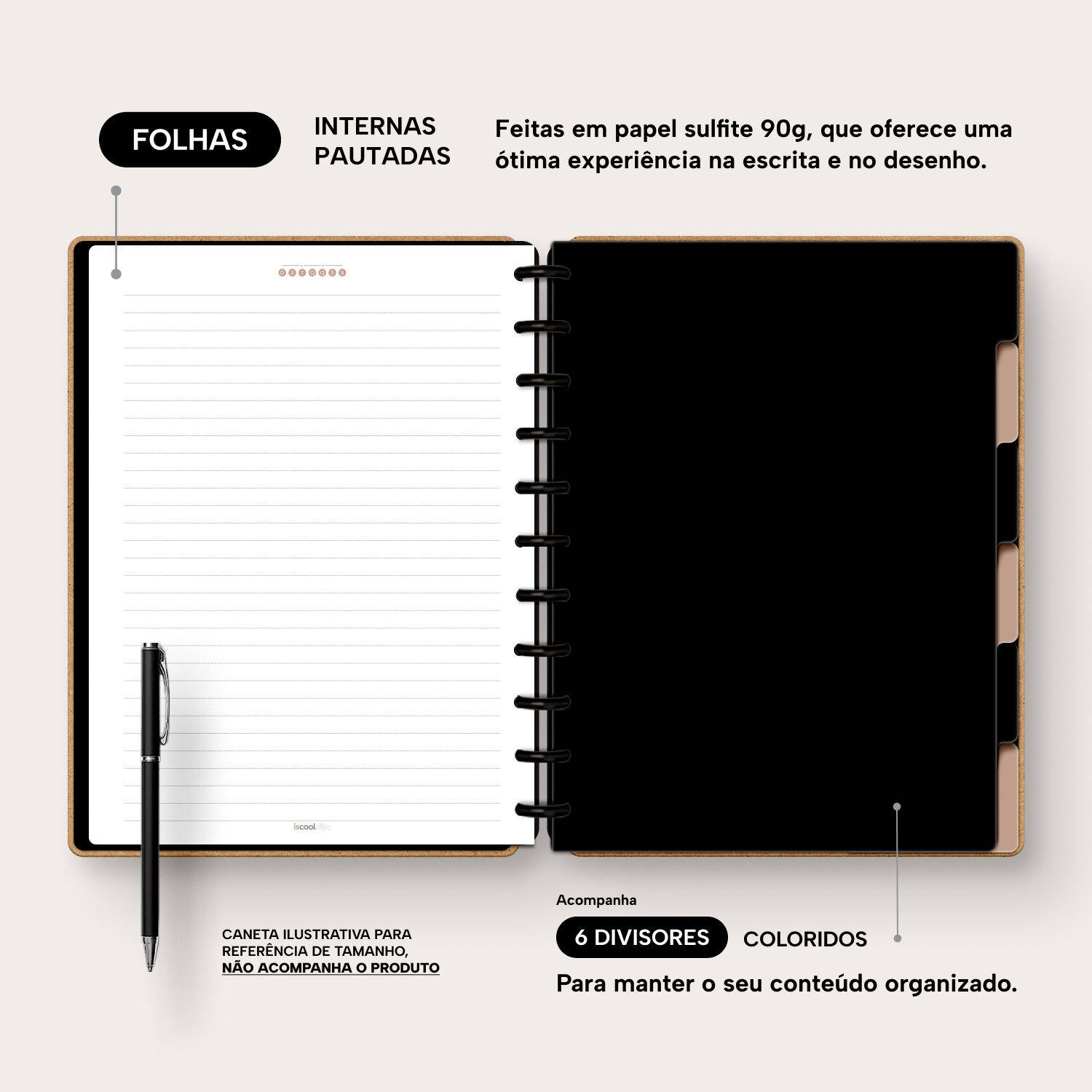 A capa é dura, com impressão digital de alta definição, e acompanha 6 lindas divisórias que você pode colocar em qualquer local do caderno, funcionando como o guia perfeito para sua organização.