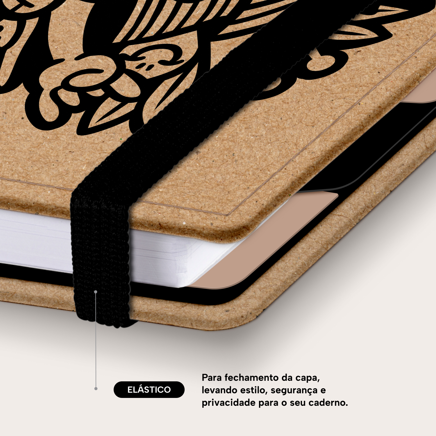 Elástico para fechamento da capa do caderno.