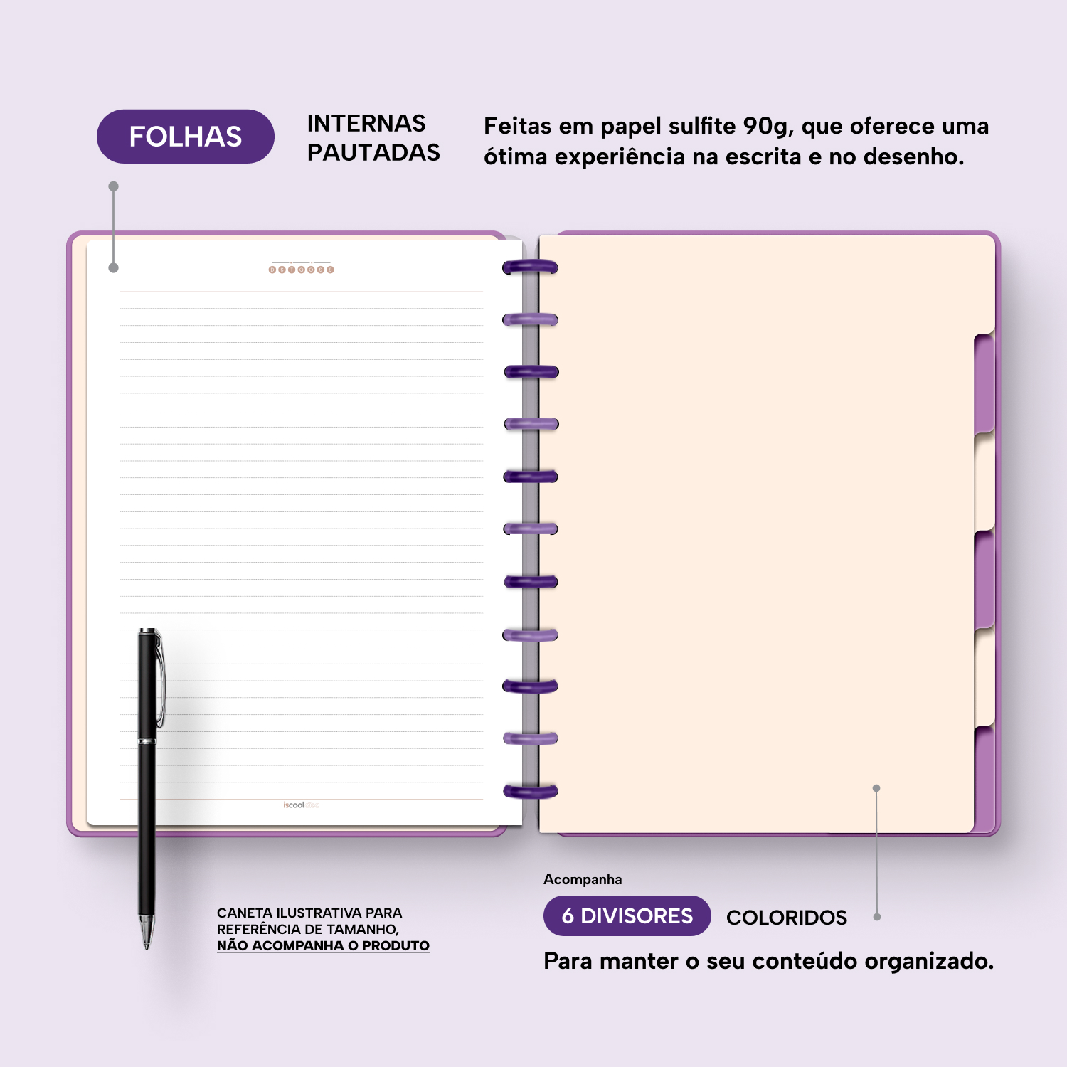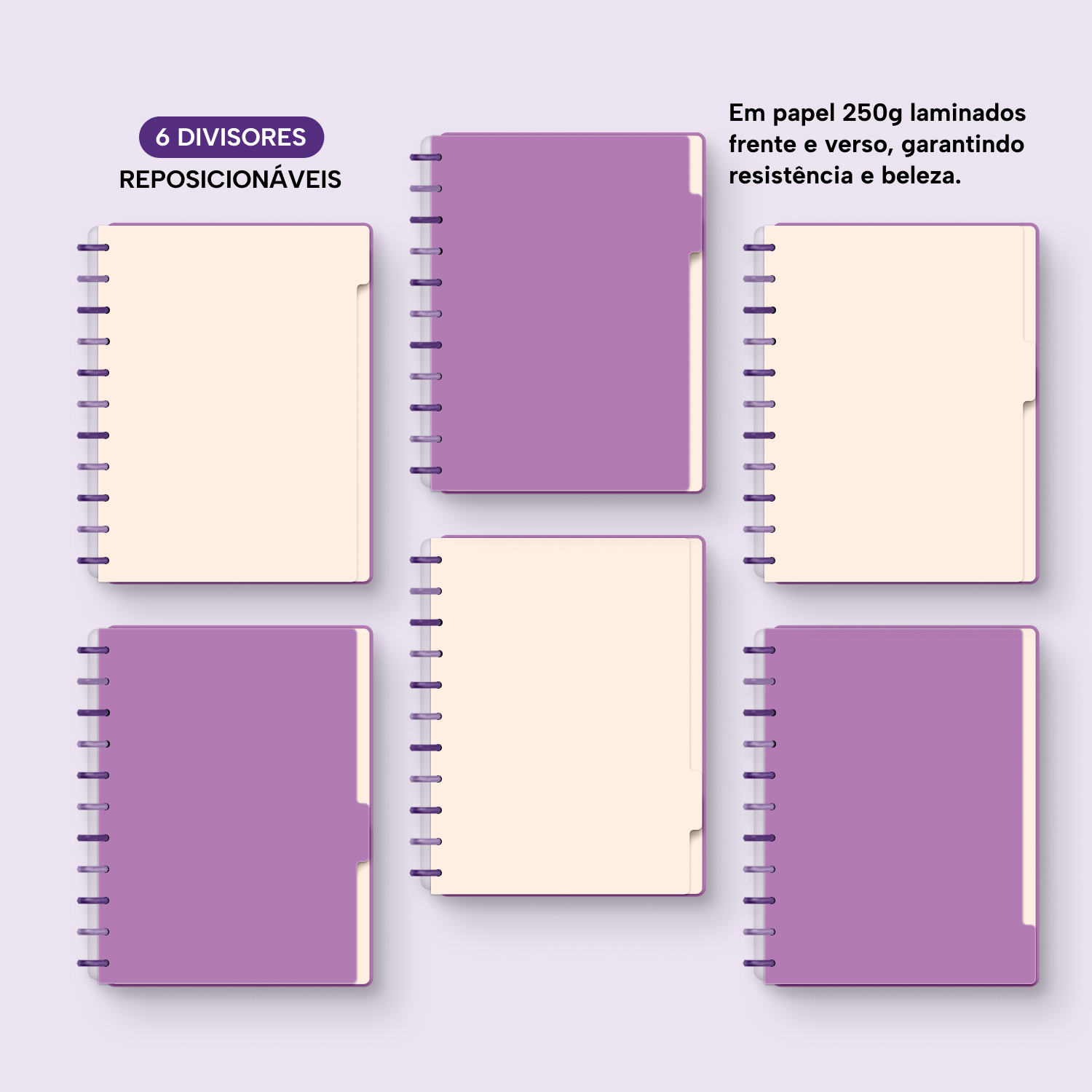 A capa é dura, com impressão digital de alta definição, e acompanha 6 lindas divisórias que você pode colocar em qualquer local do caderno, funcionando como o guia perfeito para sua organização.