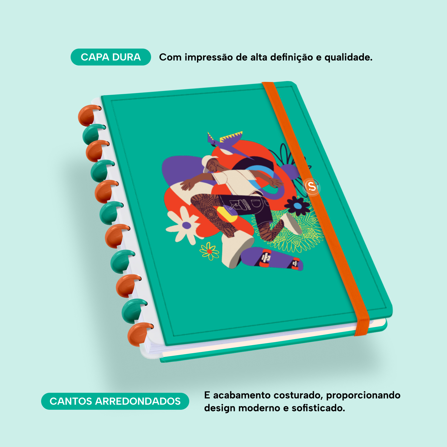 A capa é dura, com impressão digital de alta definição, e acompanha 6 lindas divisórias que você pode colocar em qualquer local do caderno, funcionando como o guia perfeito para sua organização.