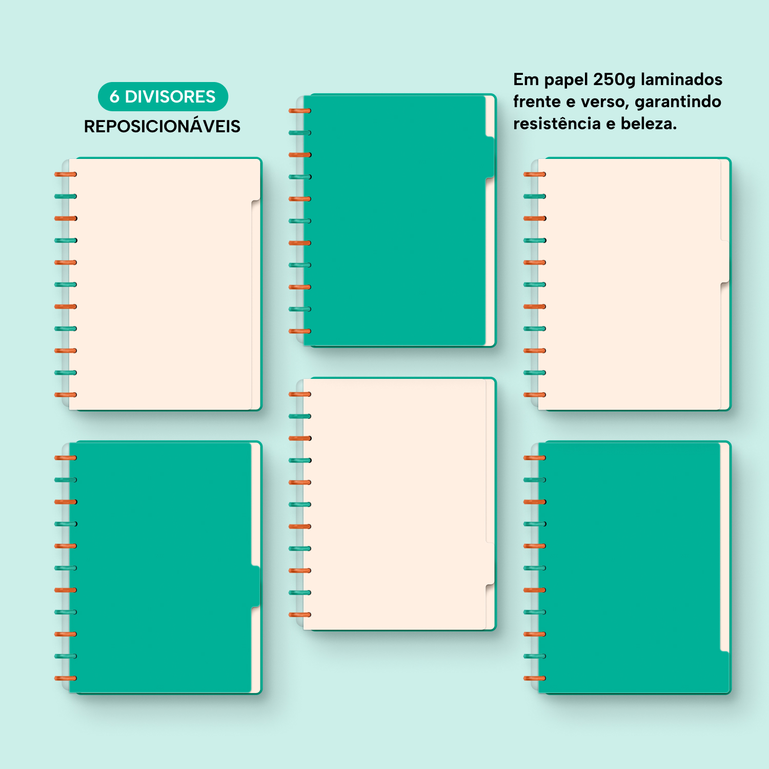 6 divisores laminados (frente e verso) em papel 250g.