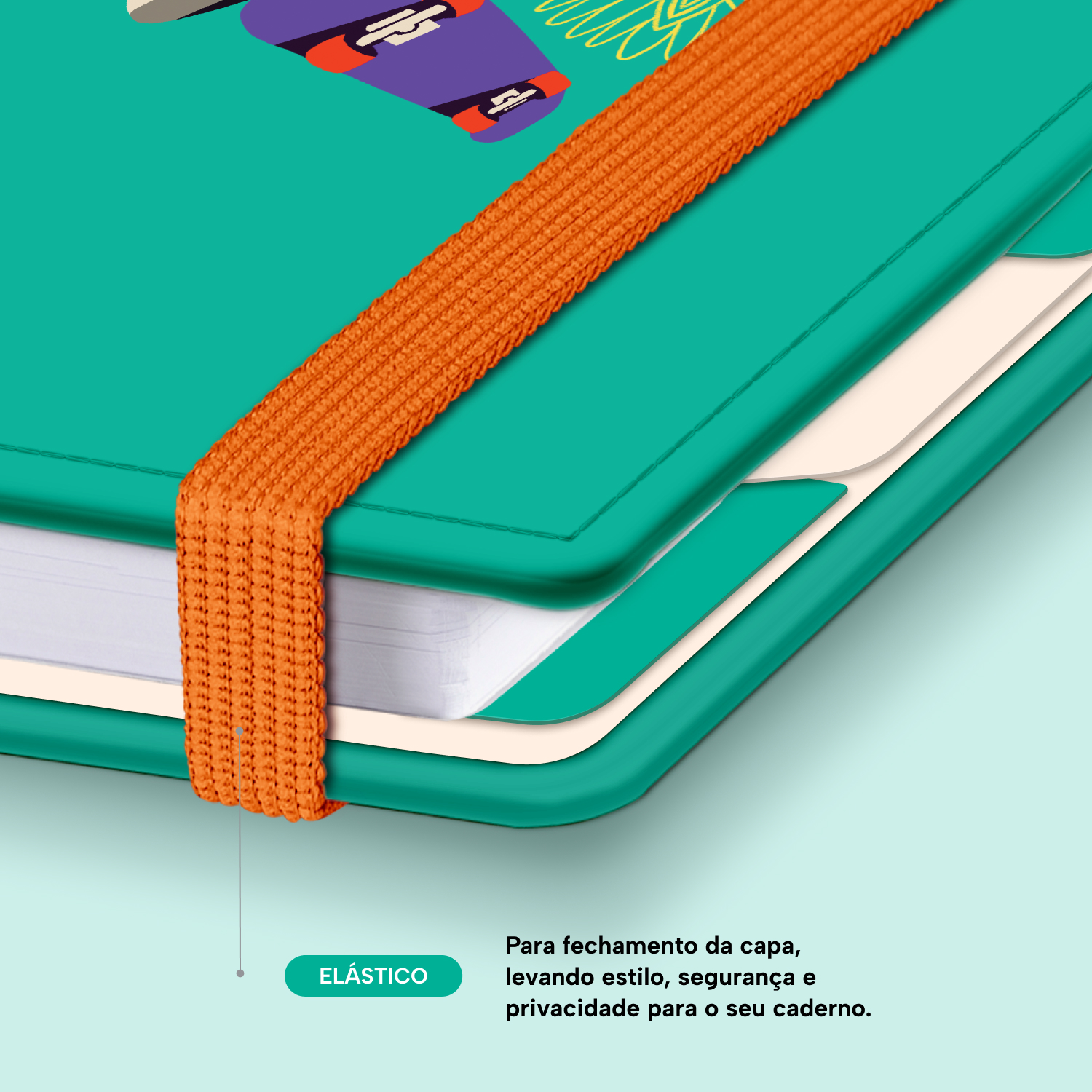 Elástico para fechamento da capa do caderno.
