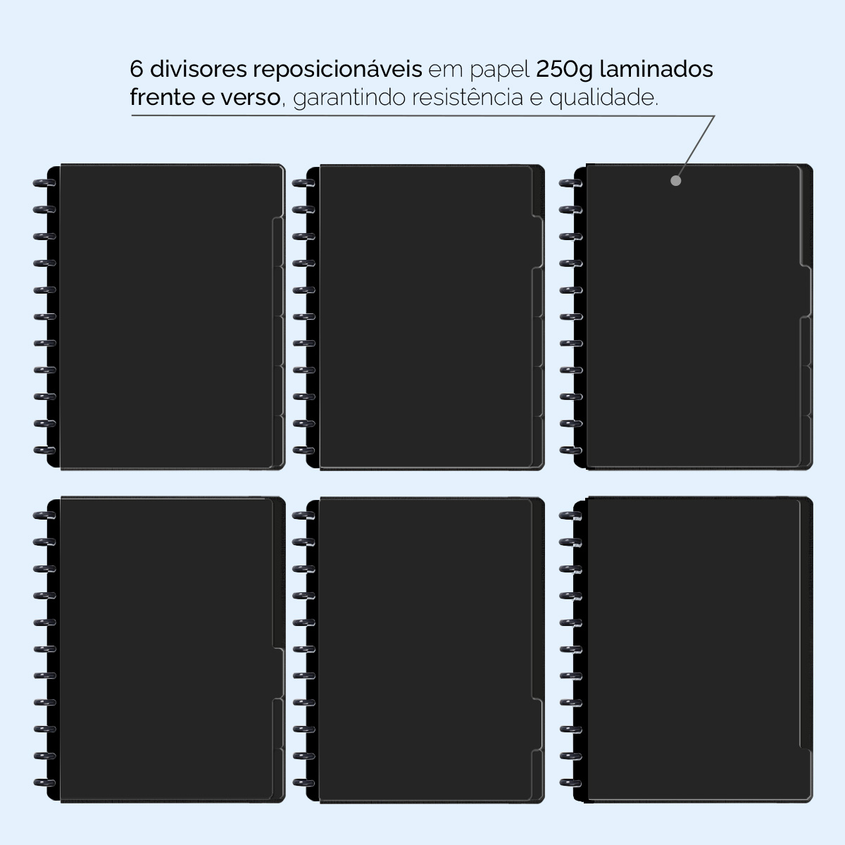 A capa é dura com impressão digital de alta definição, acompanha 6 lindas divisórias que você pode colocar em qualquer local do caderno, funcionando como o guia perfeito para sua organização.