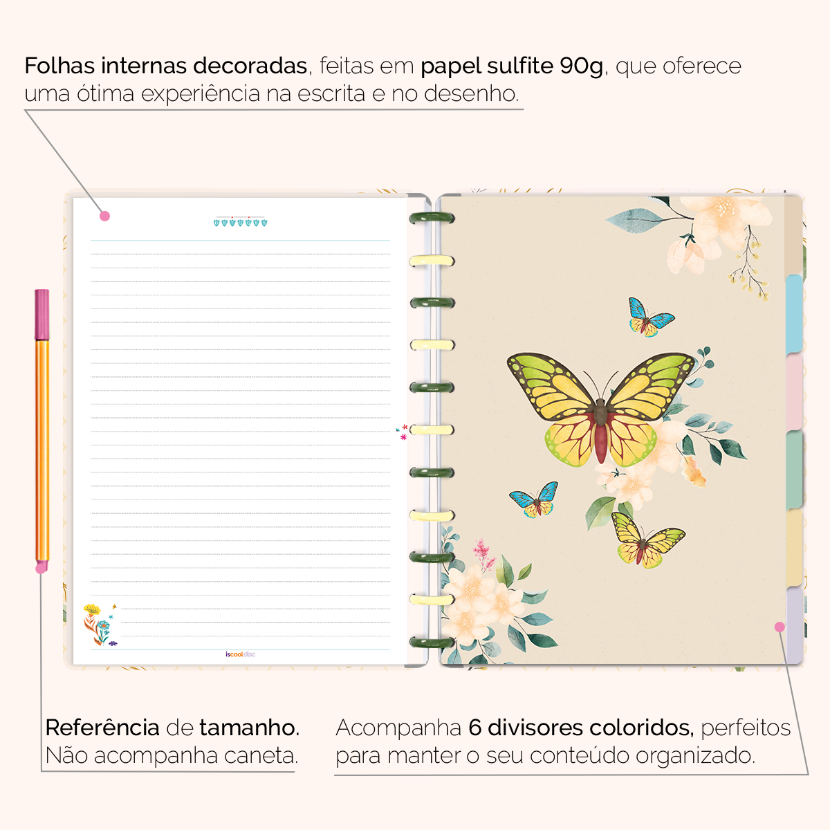 A capa é dura com impressão digital de alta definição, acompanha 6 lindas divisórias que você pode colocar em qualquer local do caderno, funcionando como o guia perfeito para sua organização.