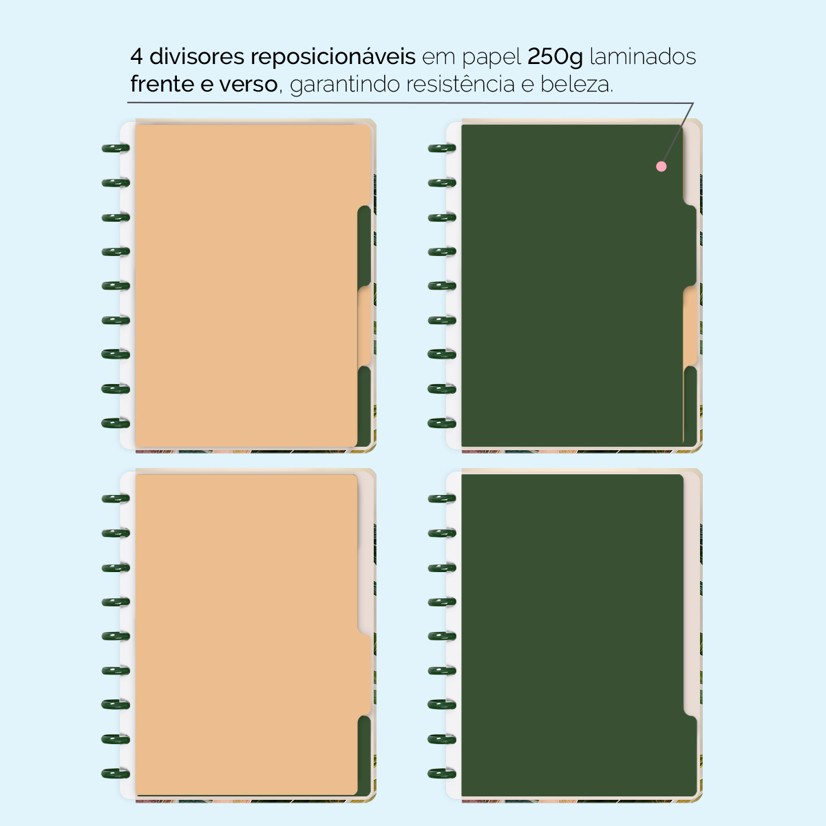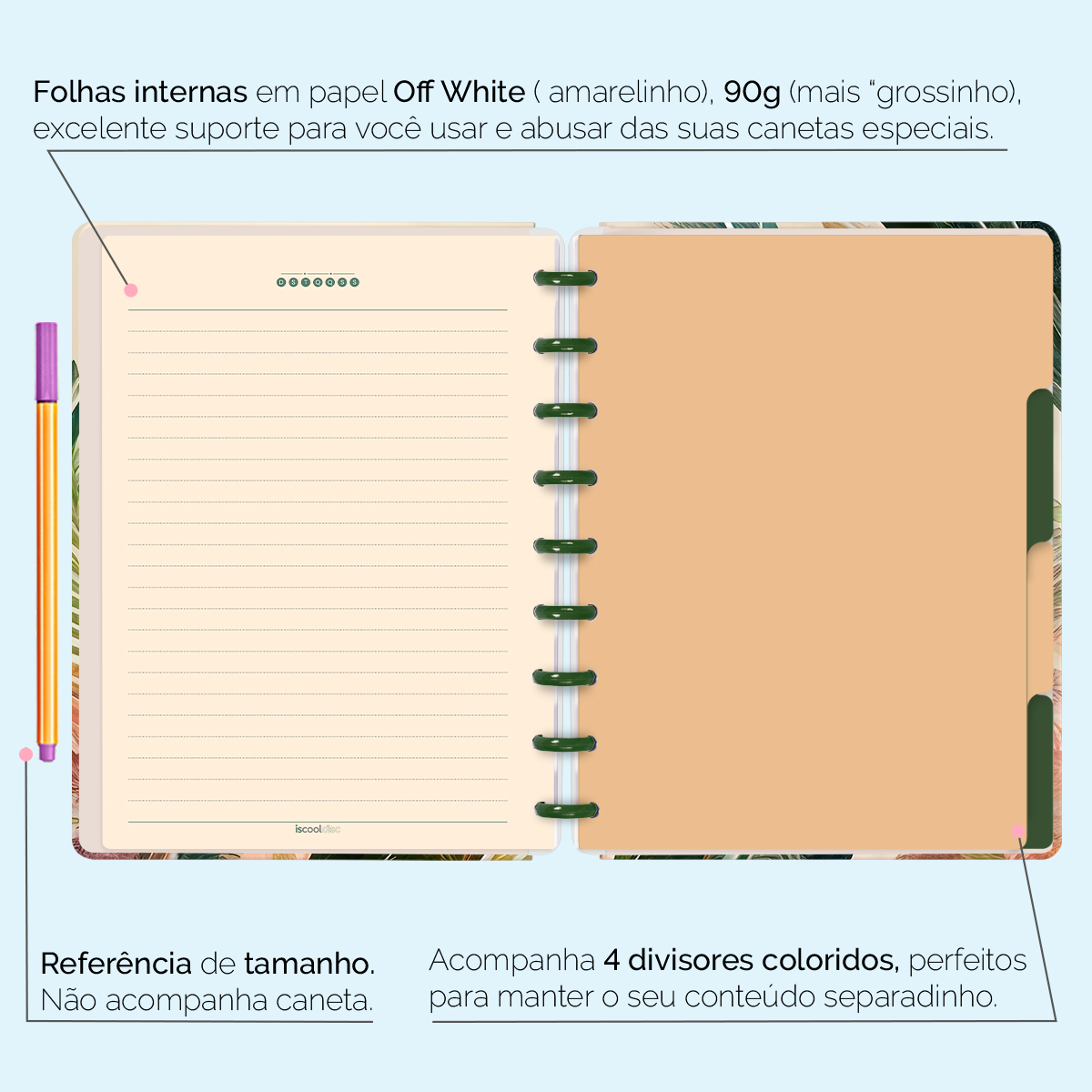 A capa é dura com impressão digital de alta definição, acompanha 6 lindas divisórias que você pode colocar em qualquer local do caderno, funcionando como o guia perfeito para sua organização.