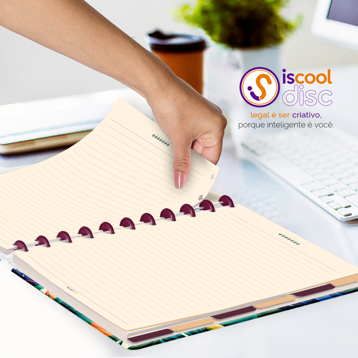 Com furos no formato de “cogumelo”, você poderá dar um “up” em seu caderno com nossos refis, além de ser compatível com outros fabricantes de cadernos de discos.