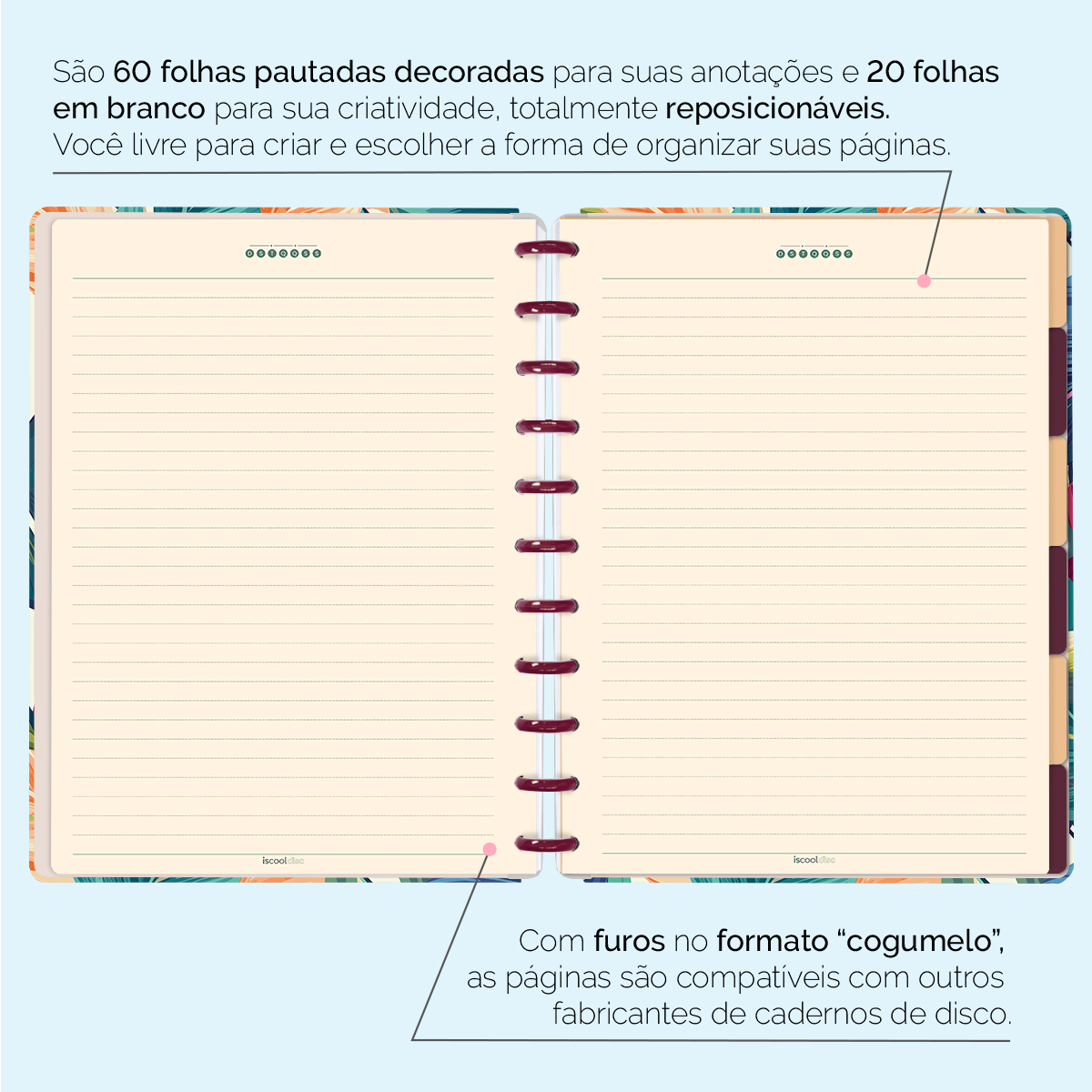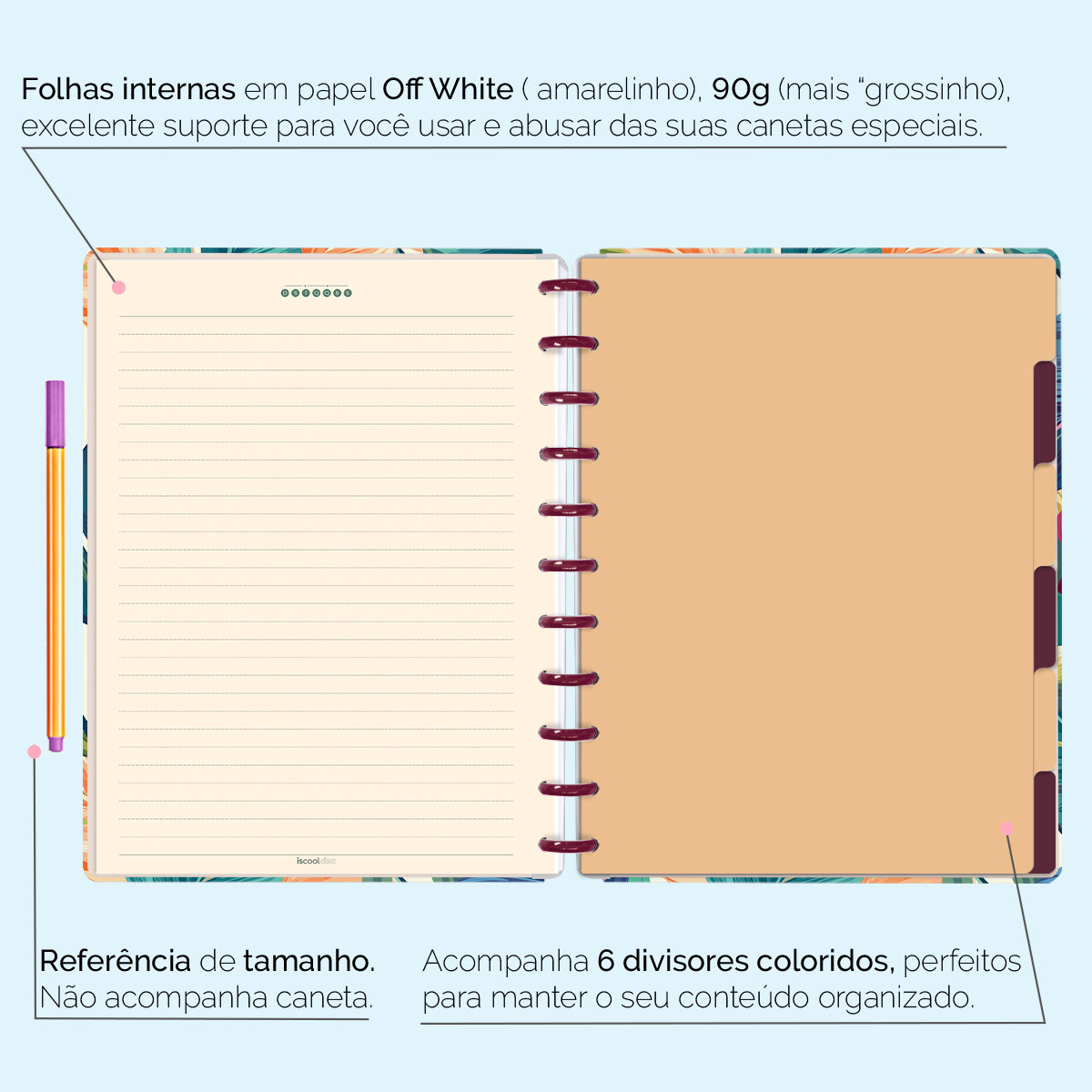 A capa é dura com impressão digital de alta definição, acompanha 6 lindas divisórias que você pode colocar em qualquer local do caderno, funcionando como o guia perfeito para sua organização.