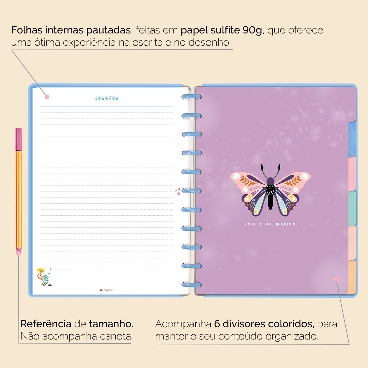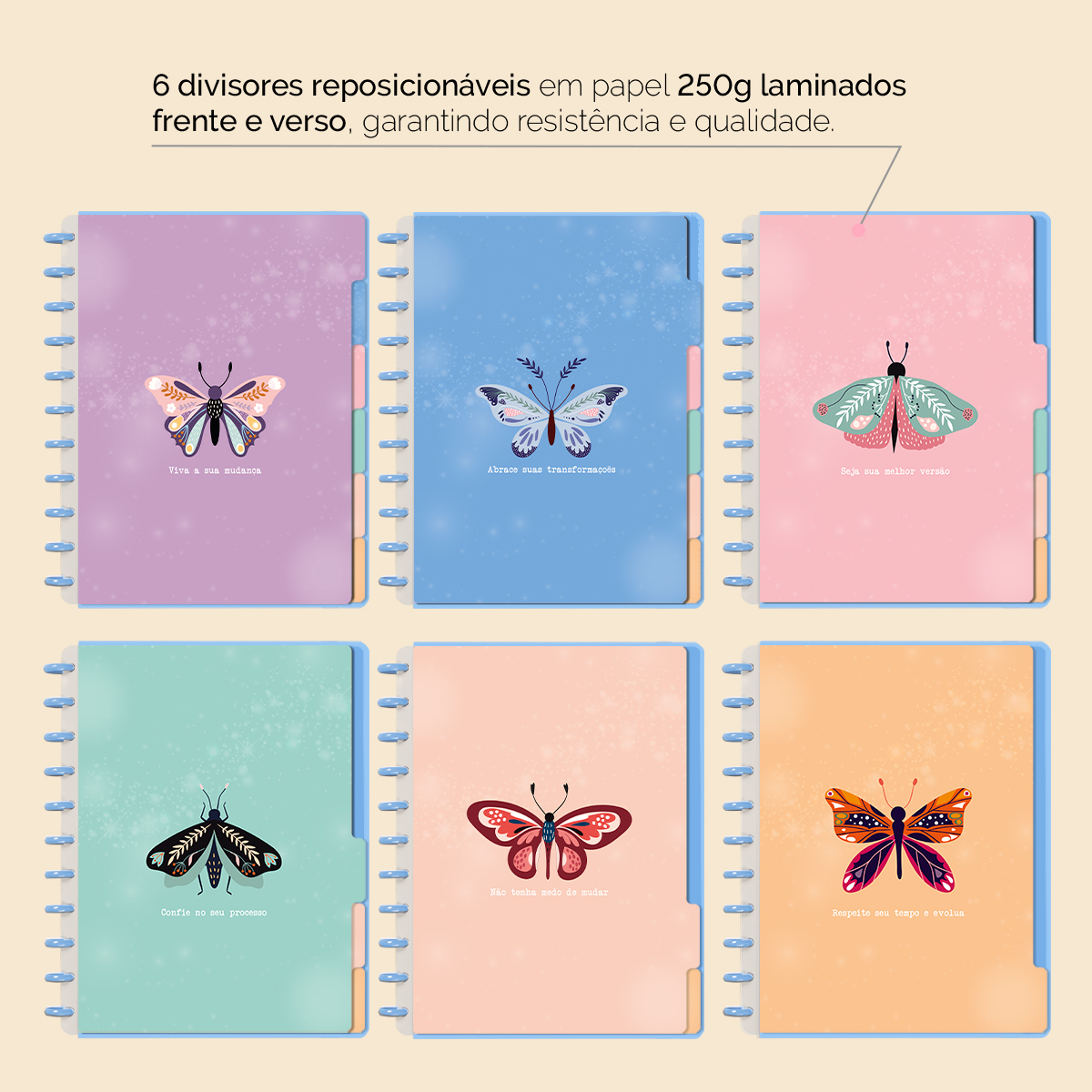A capa é dura com impressão digital de alta definição, acompanha 6 lindas divisórias que você pode colocar em qualquer local do caderno, funcionando como o guia perfeito para sua organização.