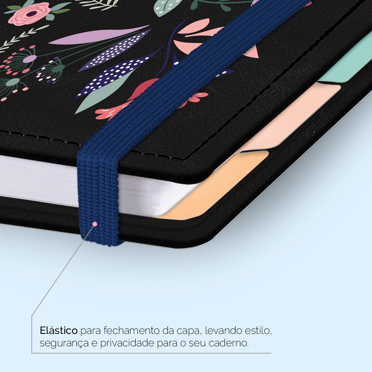 Elástico para fechamento da capa do caderno.