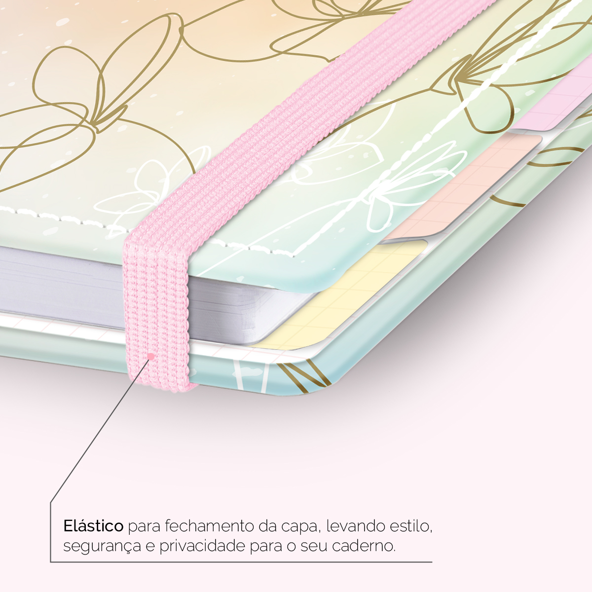 Elástico para fechamento da capa do caderno.