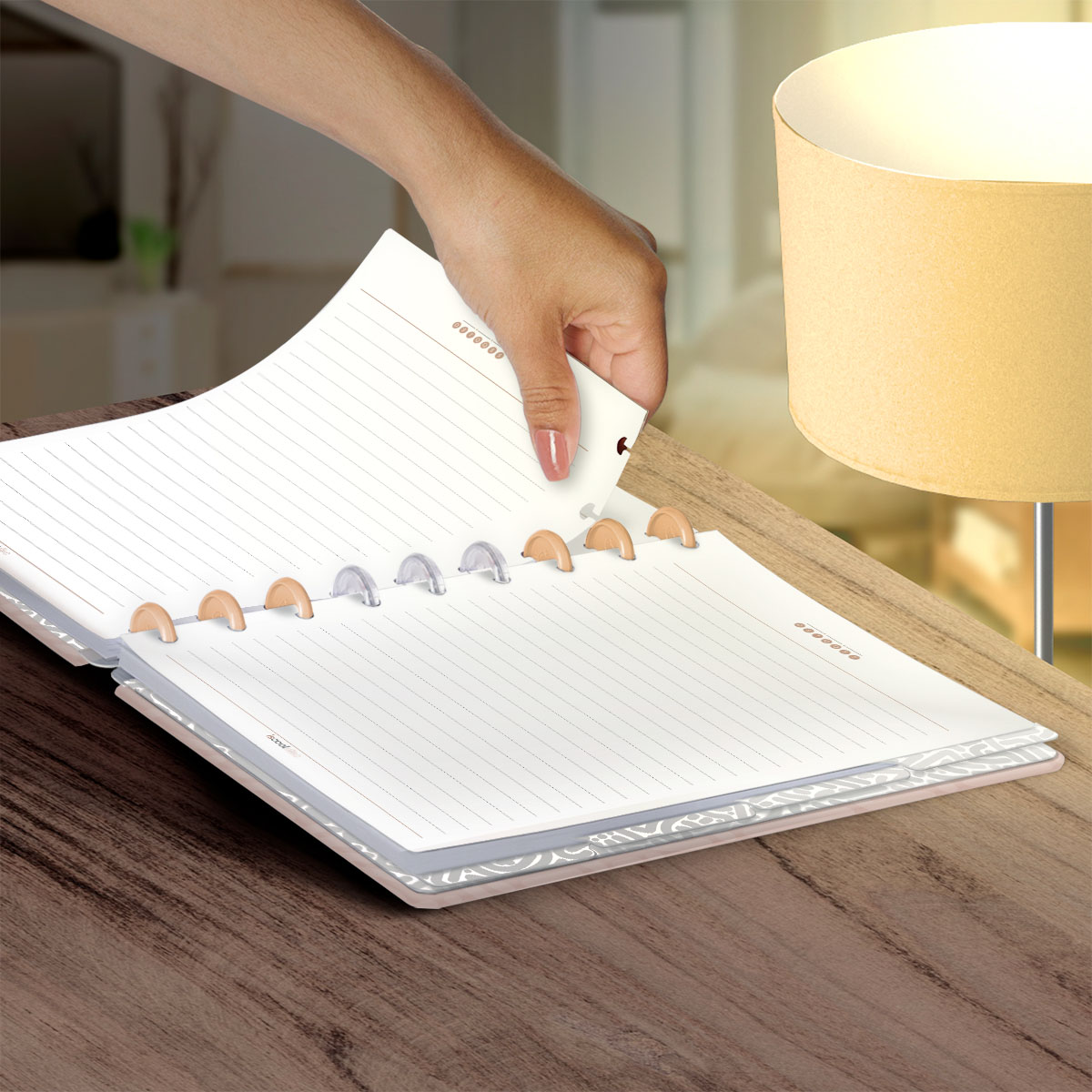 Com furos no formato de “cogumelo”, você poderá dar um “up” em seu caderno com nossos refis, além de ser compatível com outros fabricantes de cadernos de discos.