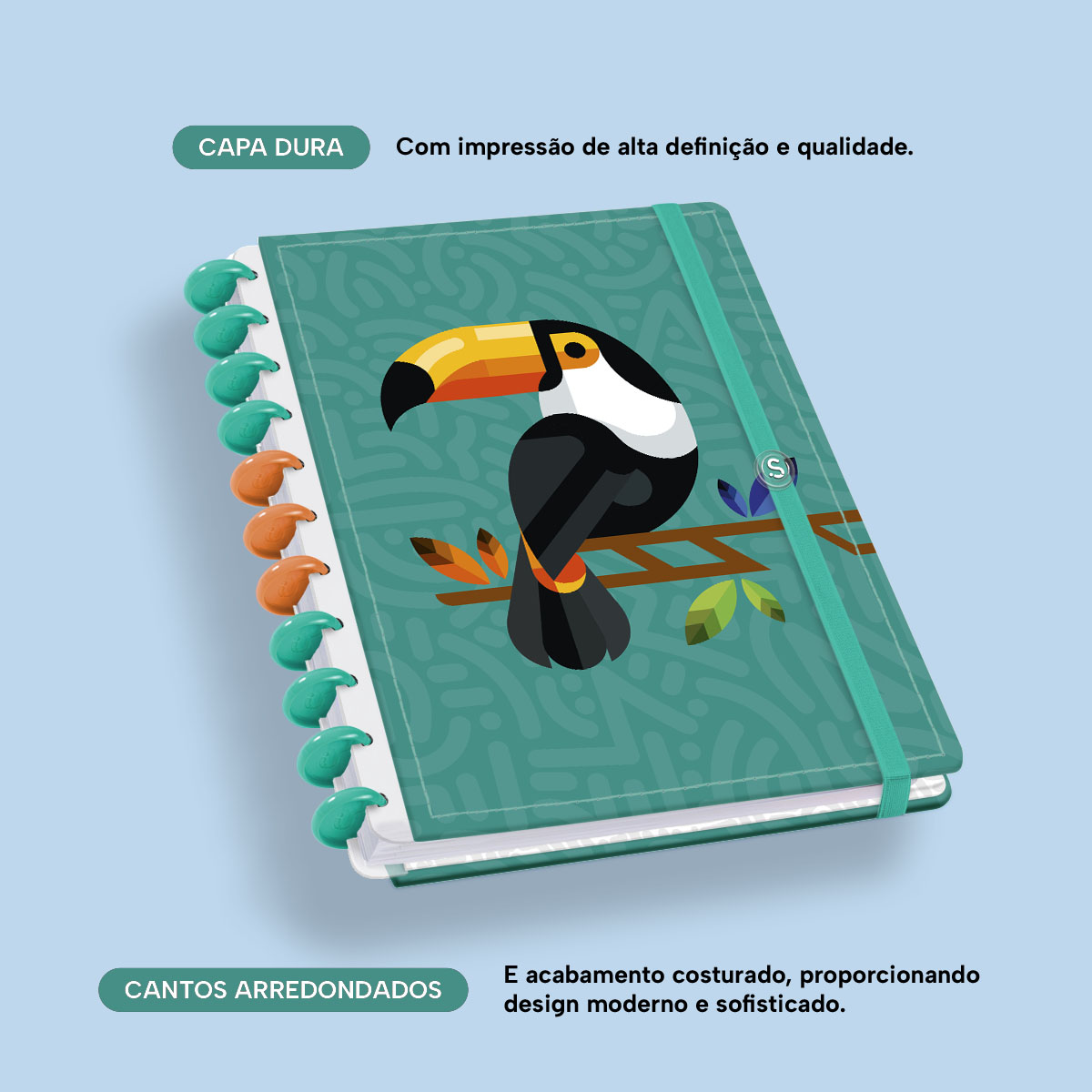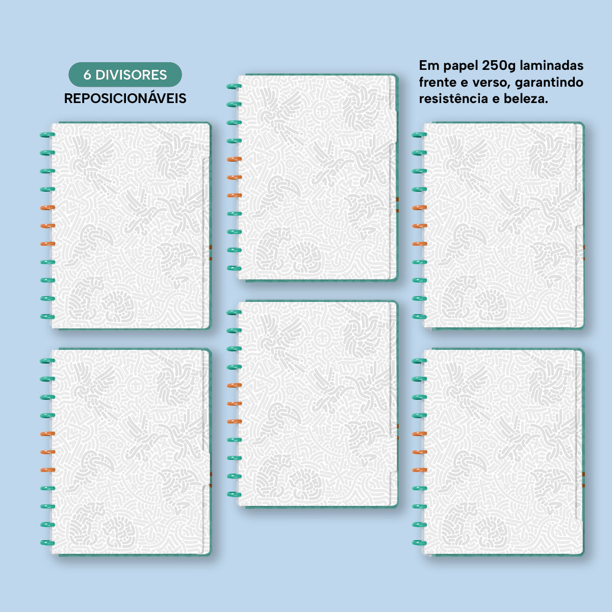 A capa é dura, com impressão digital de alta definição, e acompanha 6 lindas divisórias que você pode colocar em qualquer local do caderno, funcionando como o guia perfeito para sua organização.