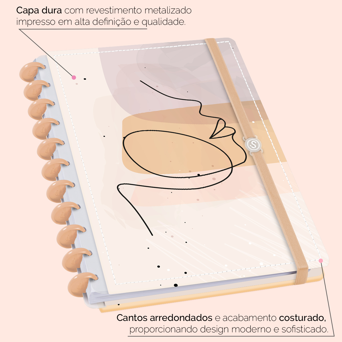 Um caderno totalmente customizável, no qual os elementos são reposicionáveis. Você pode montá-lo como preferir, deixando rolar solta toda sua criatividade.