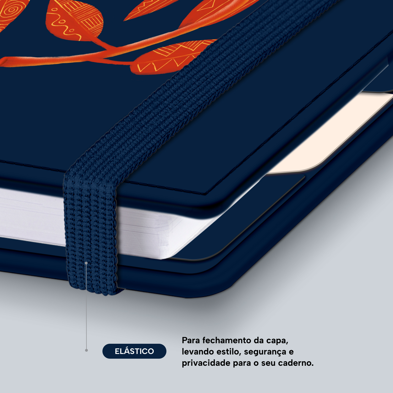 Elástico para fechamento da capa do caderno.