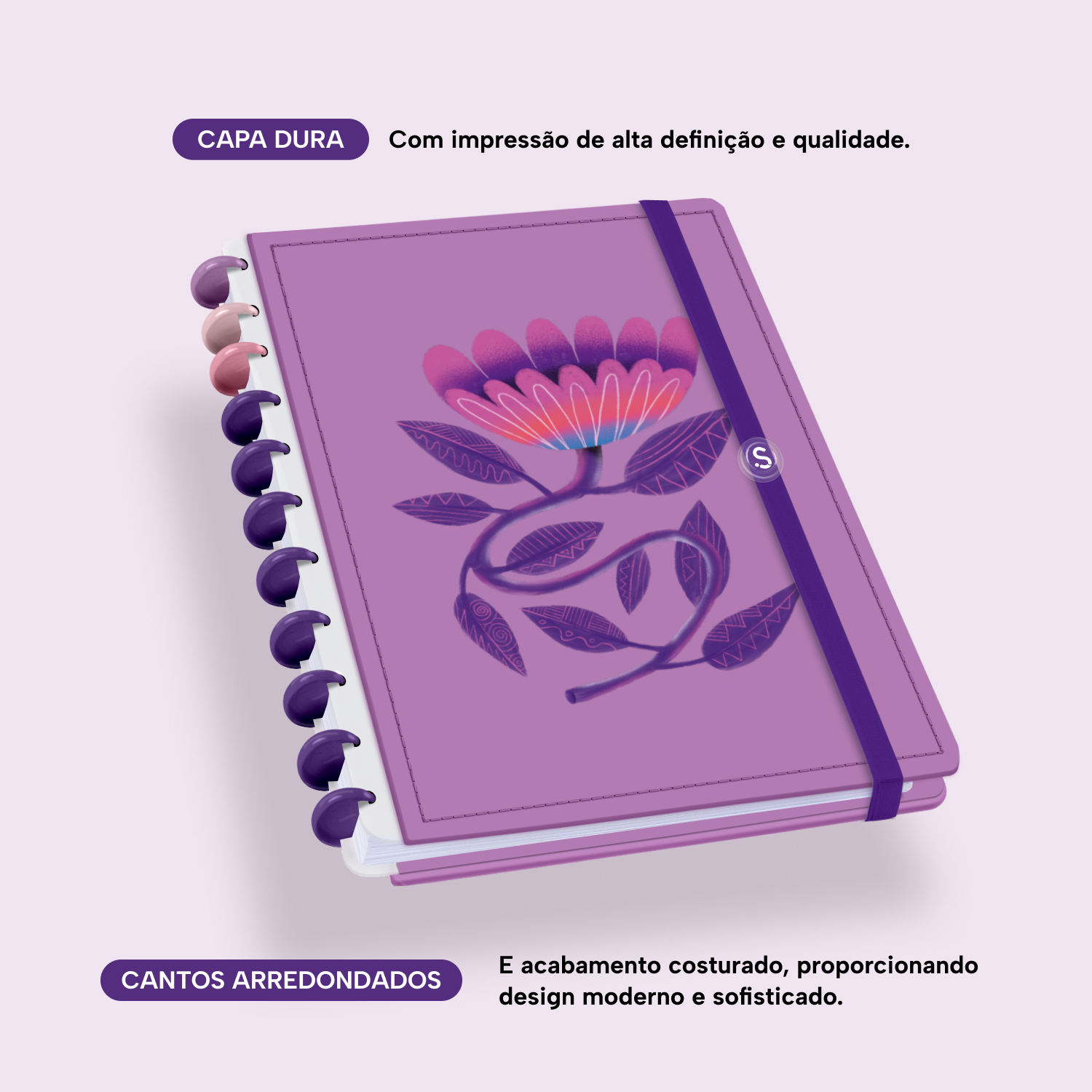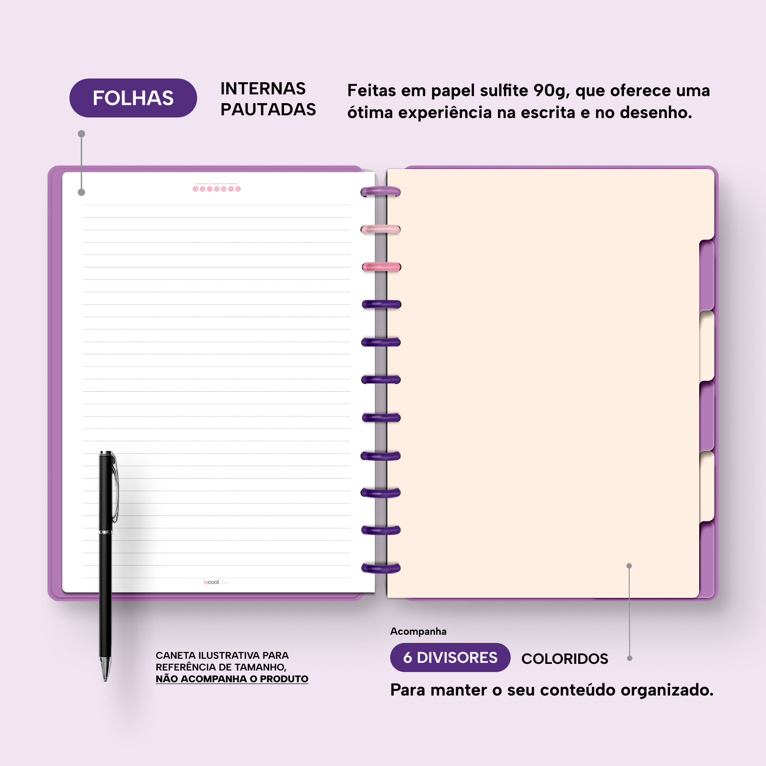 A capa é dura, com impressão digital de alta definição, e acompanha 6 lindas divisórias que você pode colocar em qualquer local do caderno, funcionando como o guia perfeito para sua organização.
