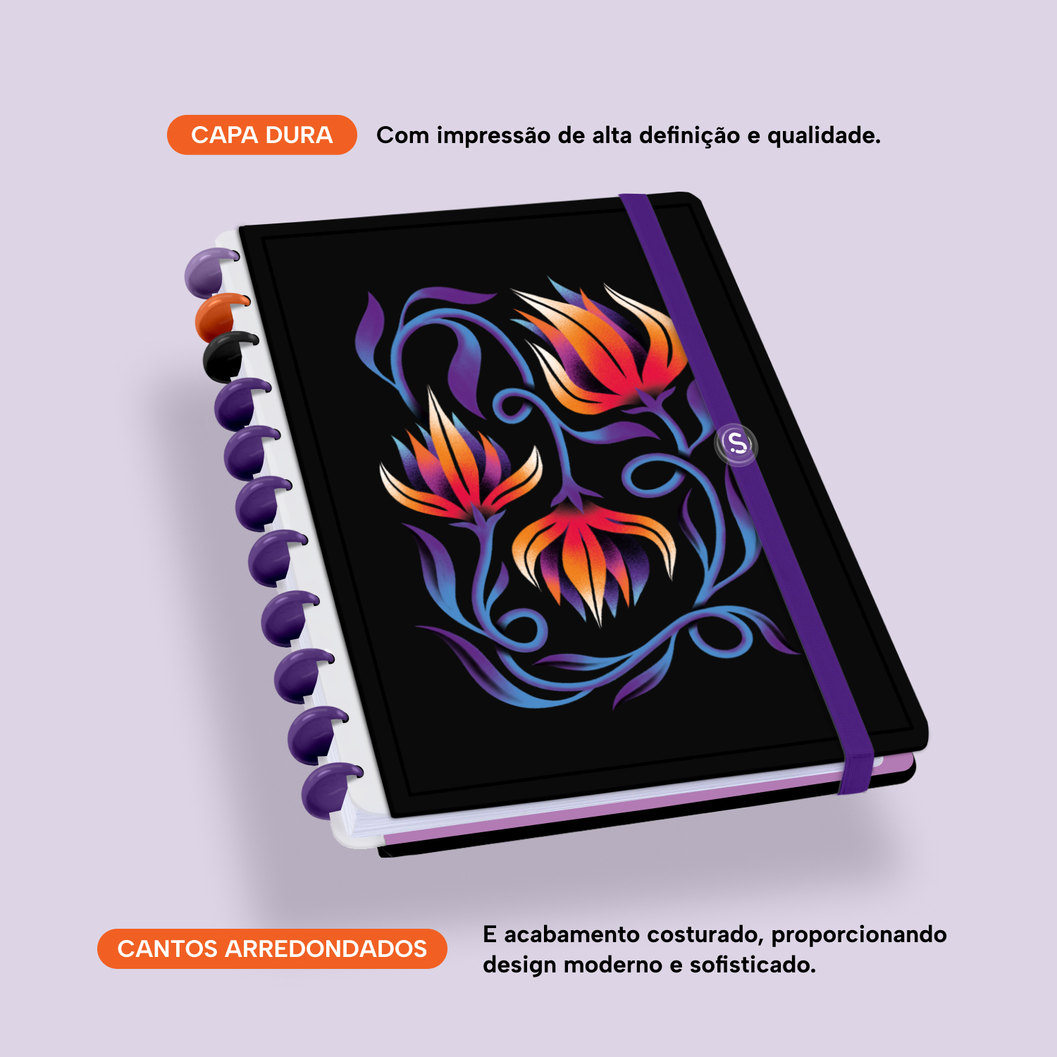 A capa é dura, com impressão digital de alta definição, e acompanha 6 lindas divisórias que você pode colocar em qualquer local do caderno, funcionando como o guia perfeito para sua organização.