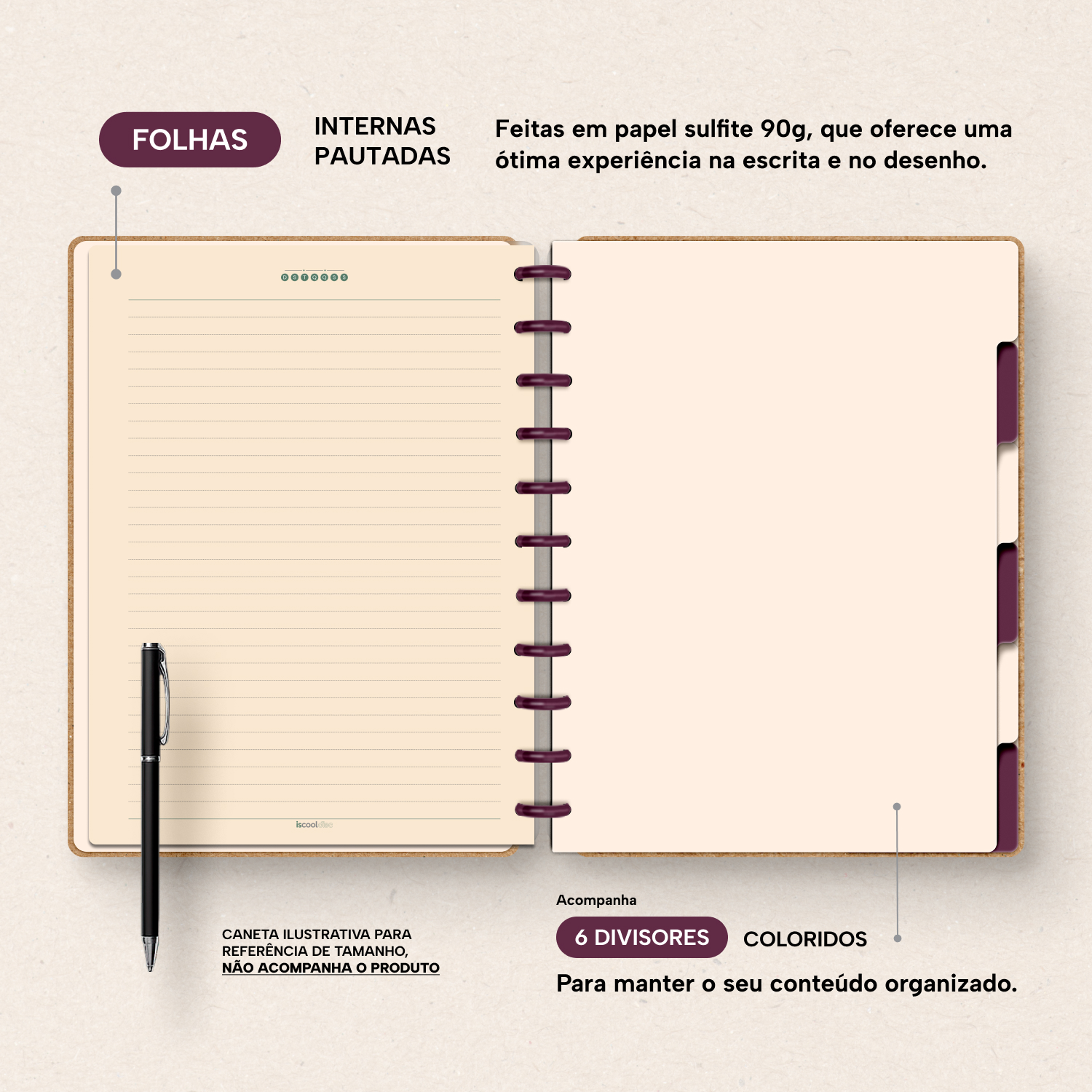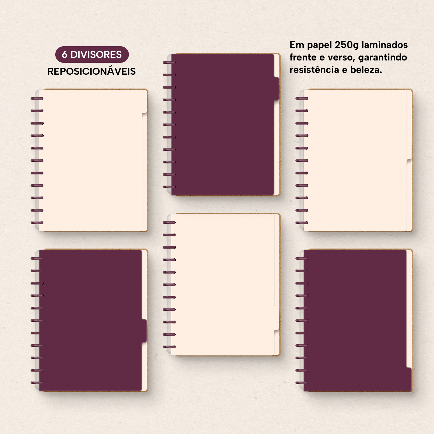 A capa é dura, com impressão digital de alta definição, e acompanha 6 lindas divisórias que você pode colocar em qualquer local do caderno, funcionando como o guia perfeito para sua organização.