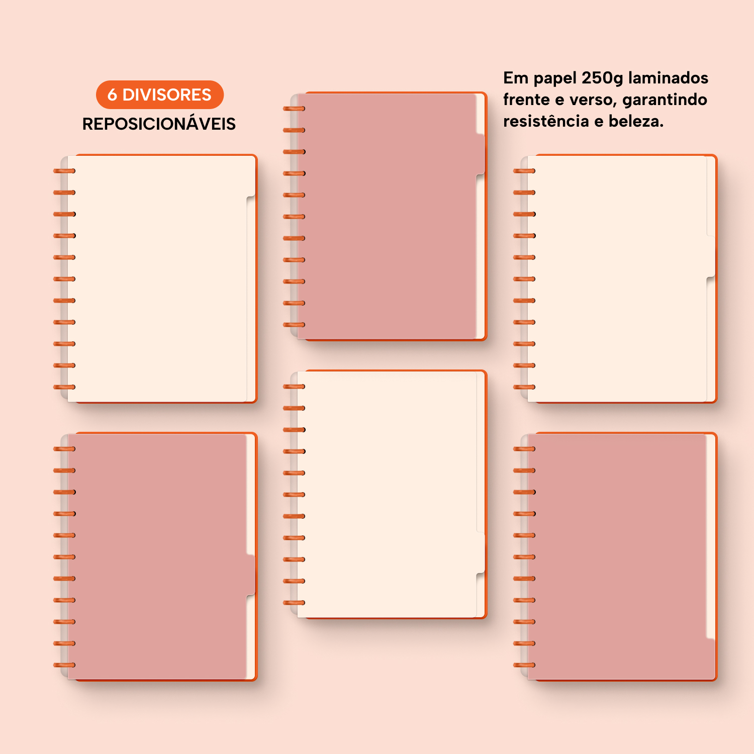 A capa é dura, com impressão digital de alta definição, e acompanha 6 lindas divisórias que você pode colocar em qualquer local do caderno, funcionando como o guia perfeito para sua organização.