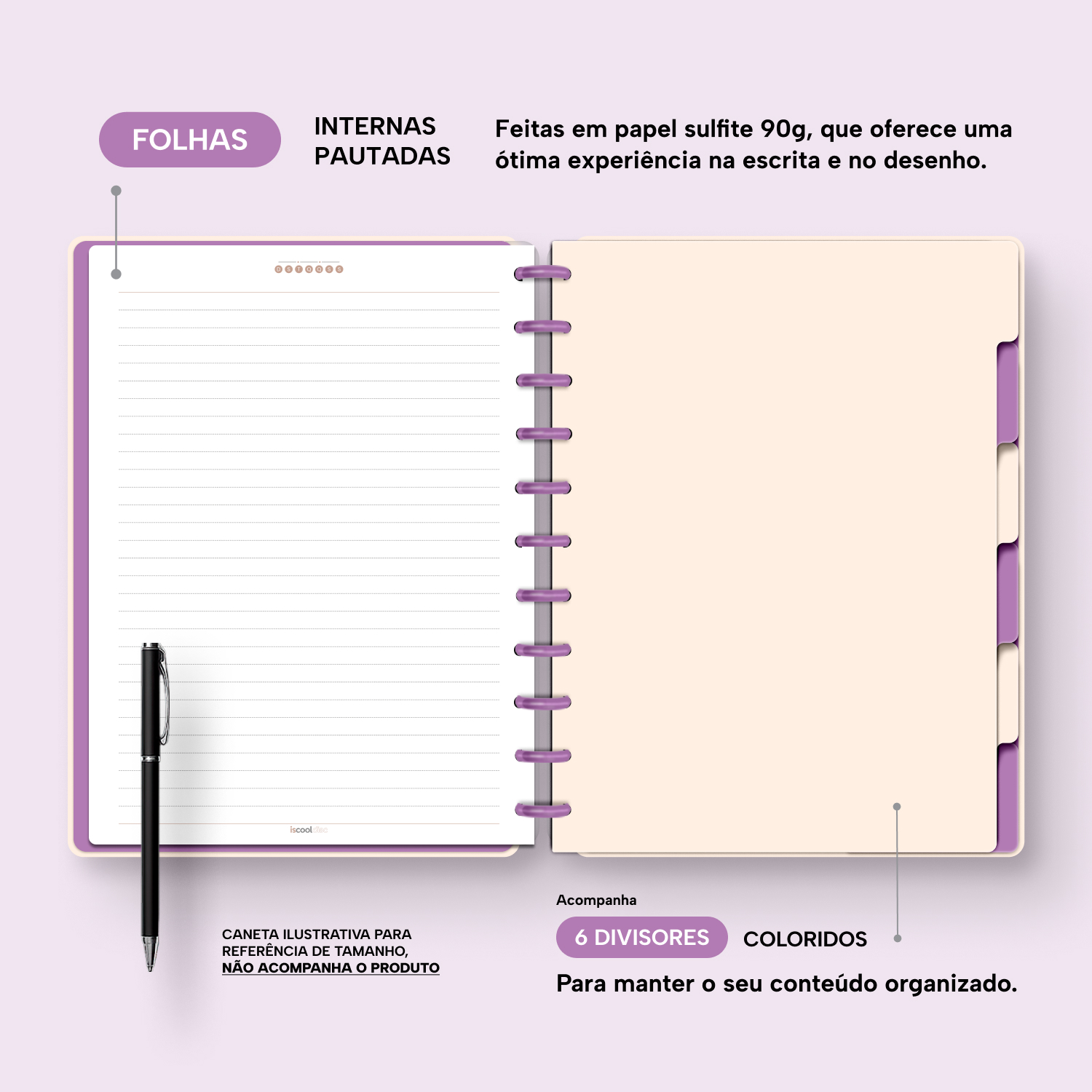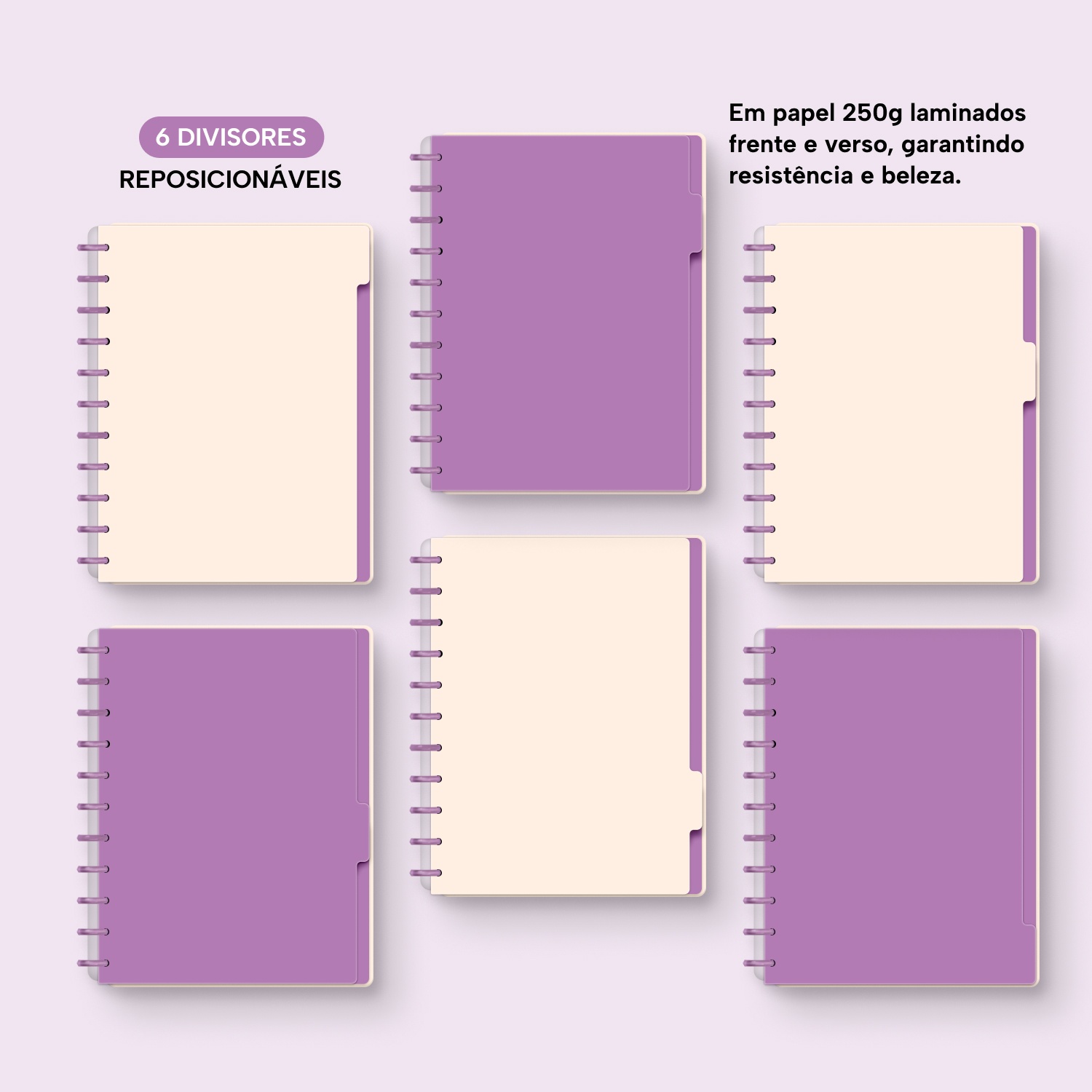 A capa é dura, com impressão digital de alta definição, e acompanha 6 lindas divisórias que você pode colocar em qualquer local do caderno, funcionando como o guia perfeito para sua organização.