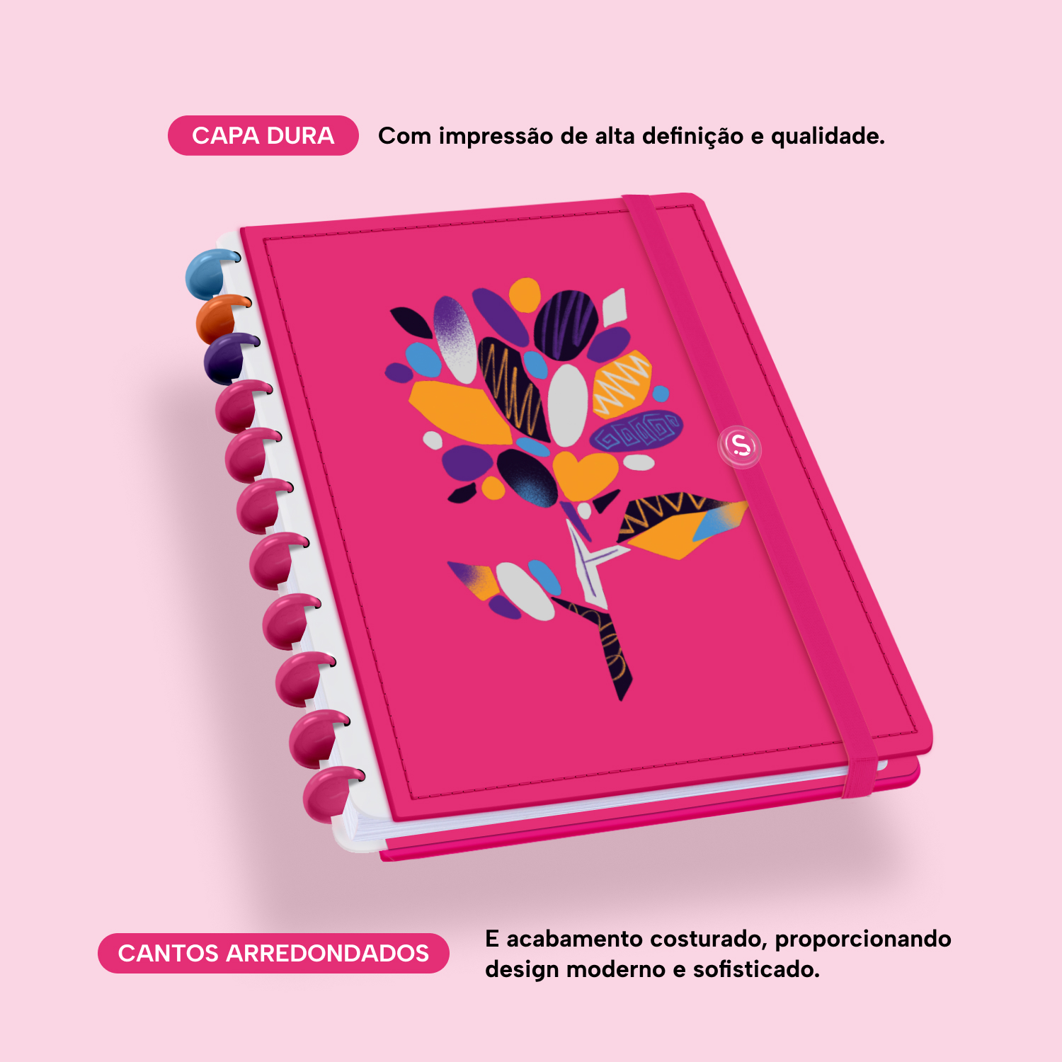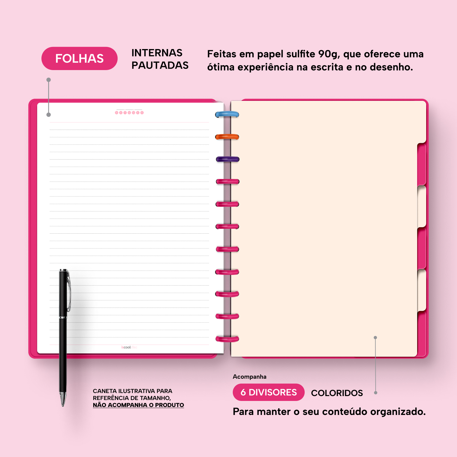 A capa é dura, com impressão digital de alta definição, e acompanha 6 lindas divisórias que você pode colocar em qualquer local do caderno, funcionando como o guia perfeito para sua organização.