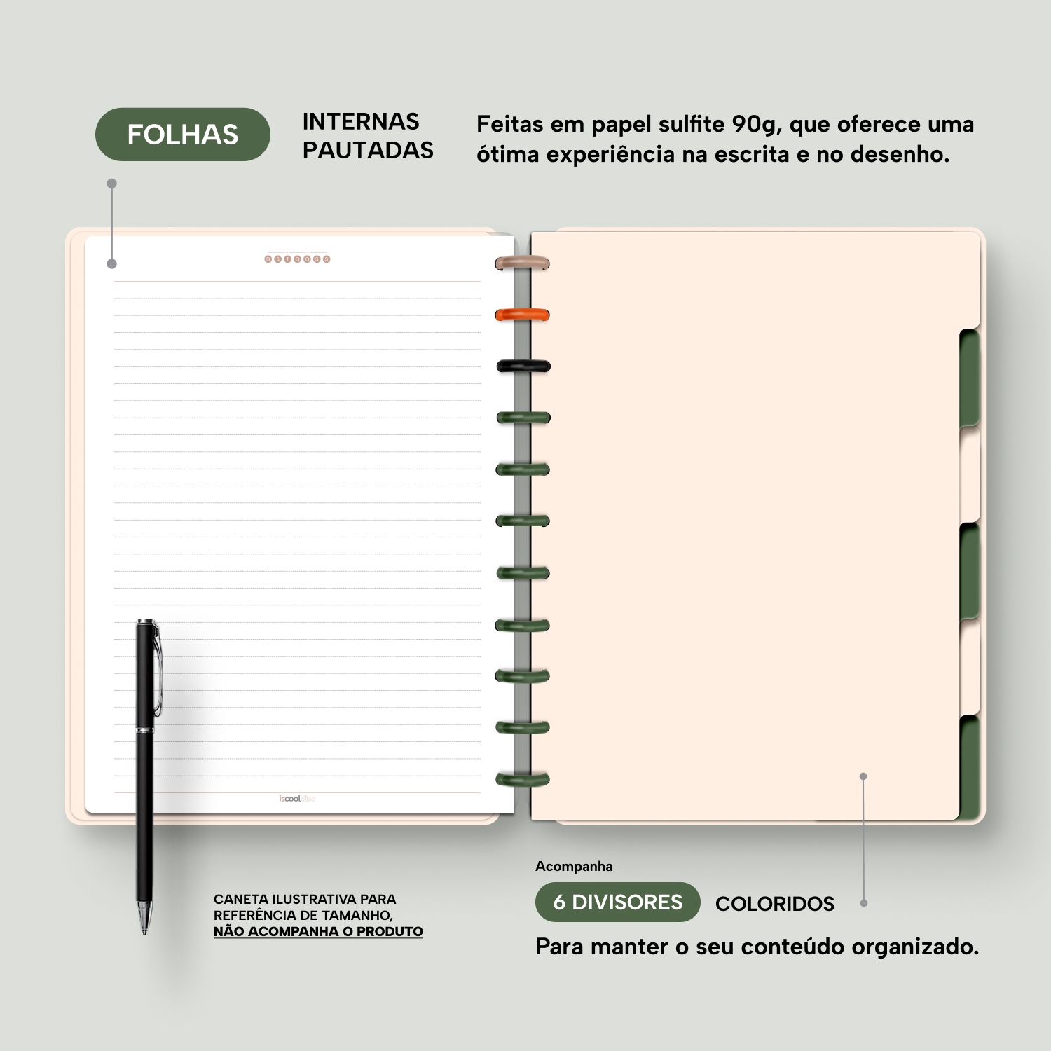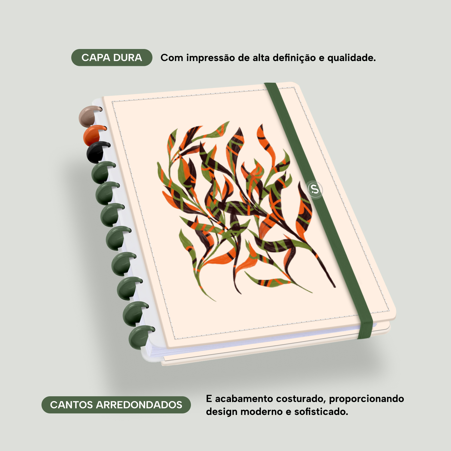 A capa é dura, com impressão digital de alta definição, e acompanha 6 lindas divisórias que você pode colocar em qualquer local do caderno, funcionando como o guia perfeito para sua organização.