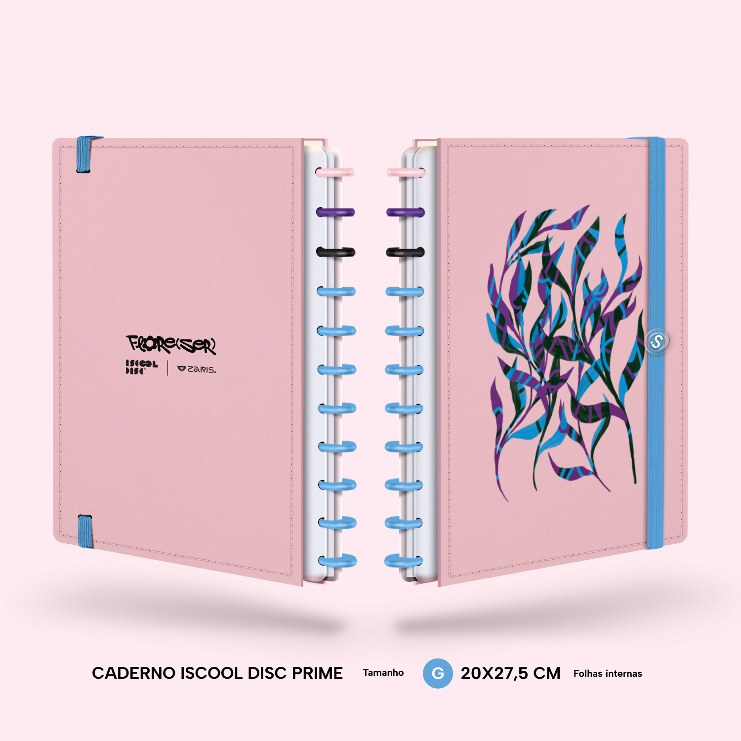 Além de tudo isso, o iscooldisc Prime conta com detalhes que fazem toda a diferença: elástico para fechamento da capa, muito mais estilo e privacidade para suas anotações; bolsa plástica para guardar seus rascunhos, referências, lembretes, documentos e uma cartela de adesivos incríveis, para que você possa personalizar seu caderno do seu jeitinho!