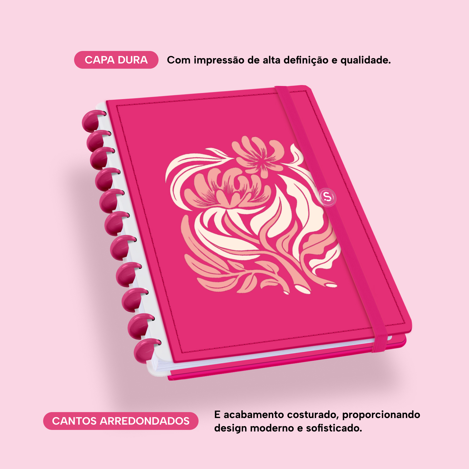 A capa é dura, com impressão digital de alta definição, e acompanha 6 lindas divisórias que você pode colocar em qualquer local do caderno, funcionando como o guia perfeito para sua organização.