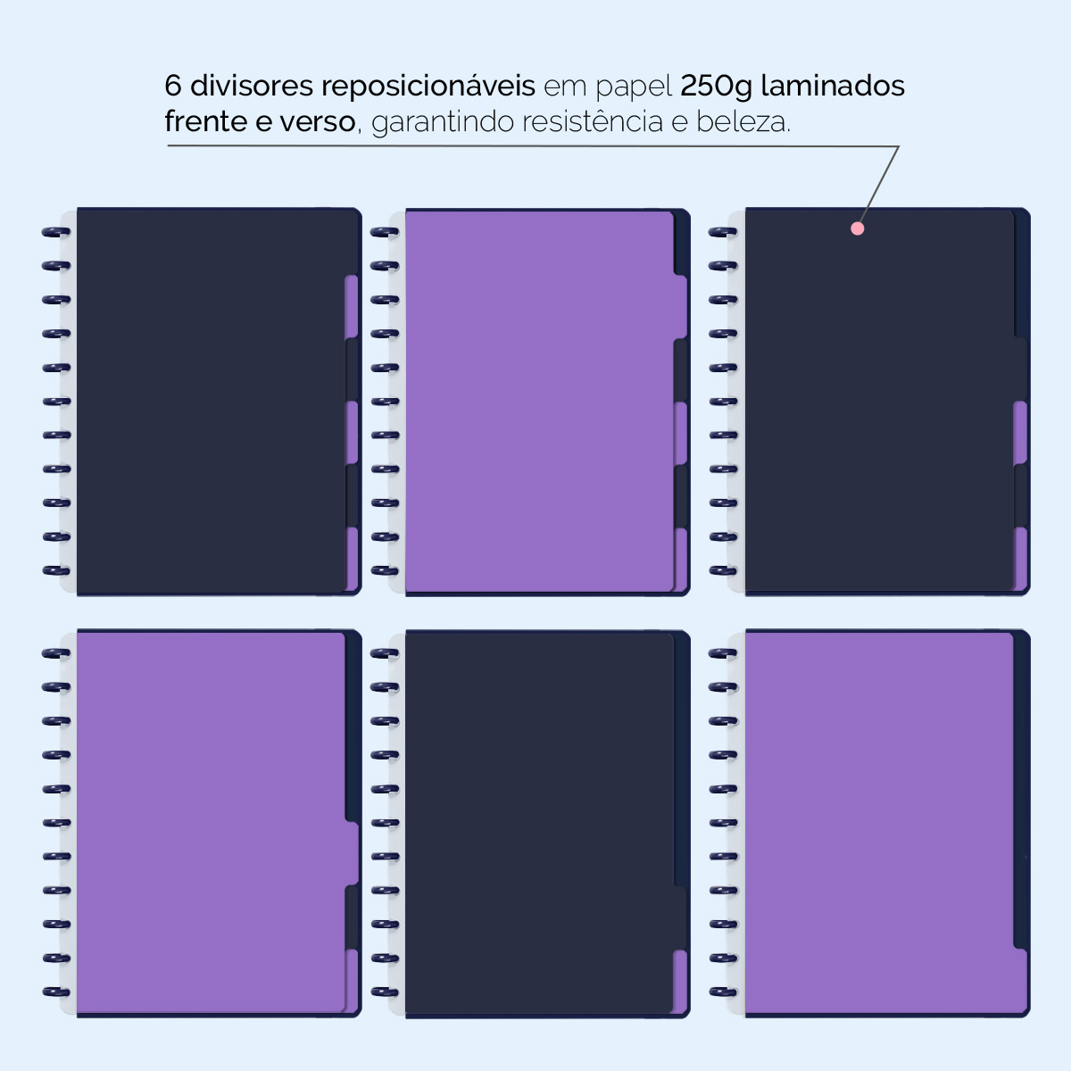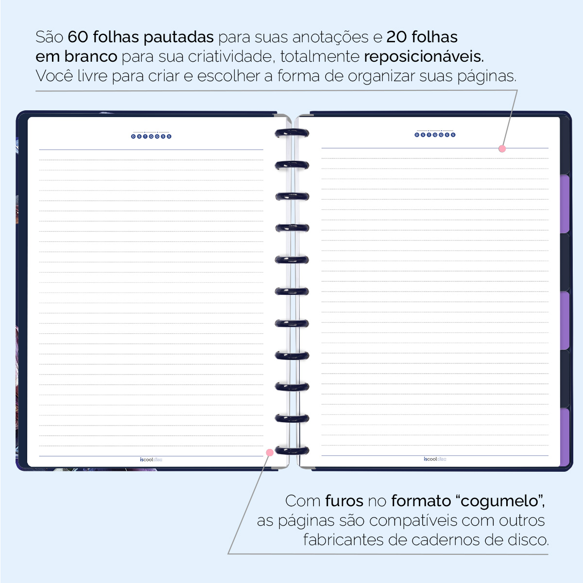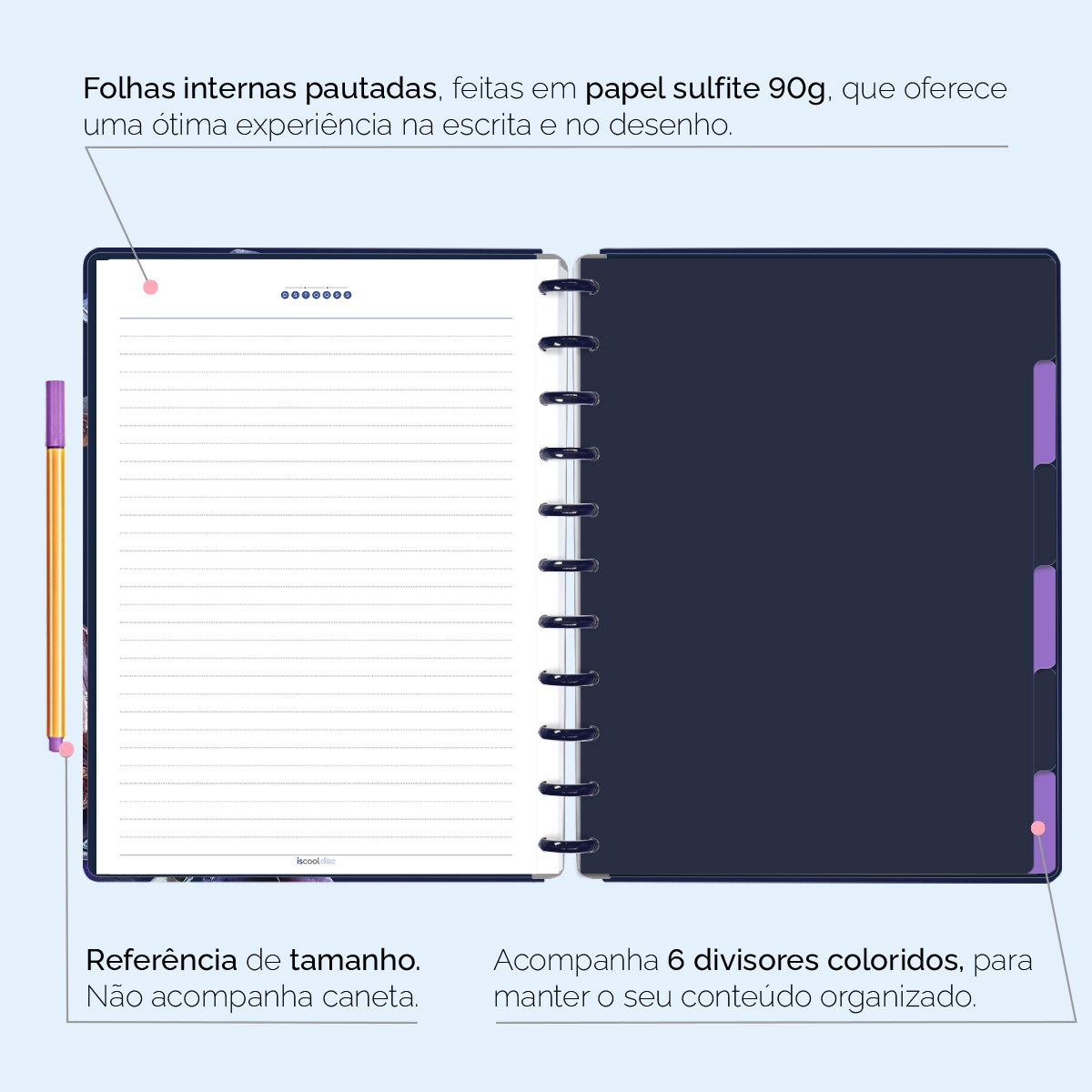 A capa é dura com impressão digital de alta definição, acompanha 6 lindas divisórias que você pode colocar em qualquer local do caderno, funcionando como o guia perfeito para sua organização.