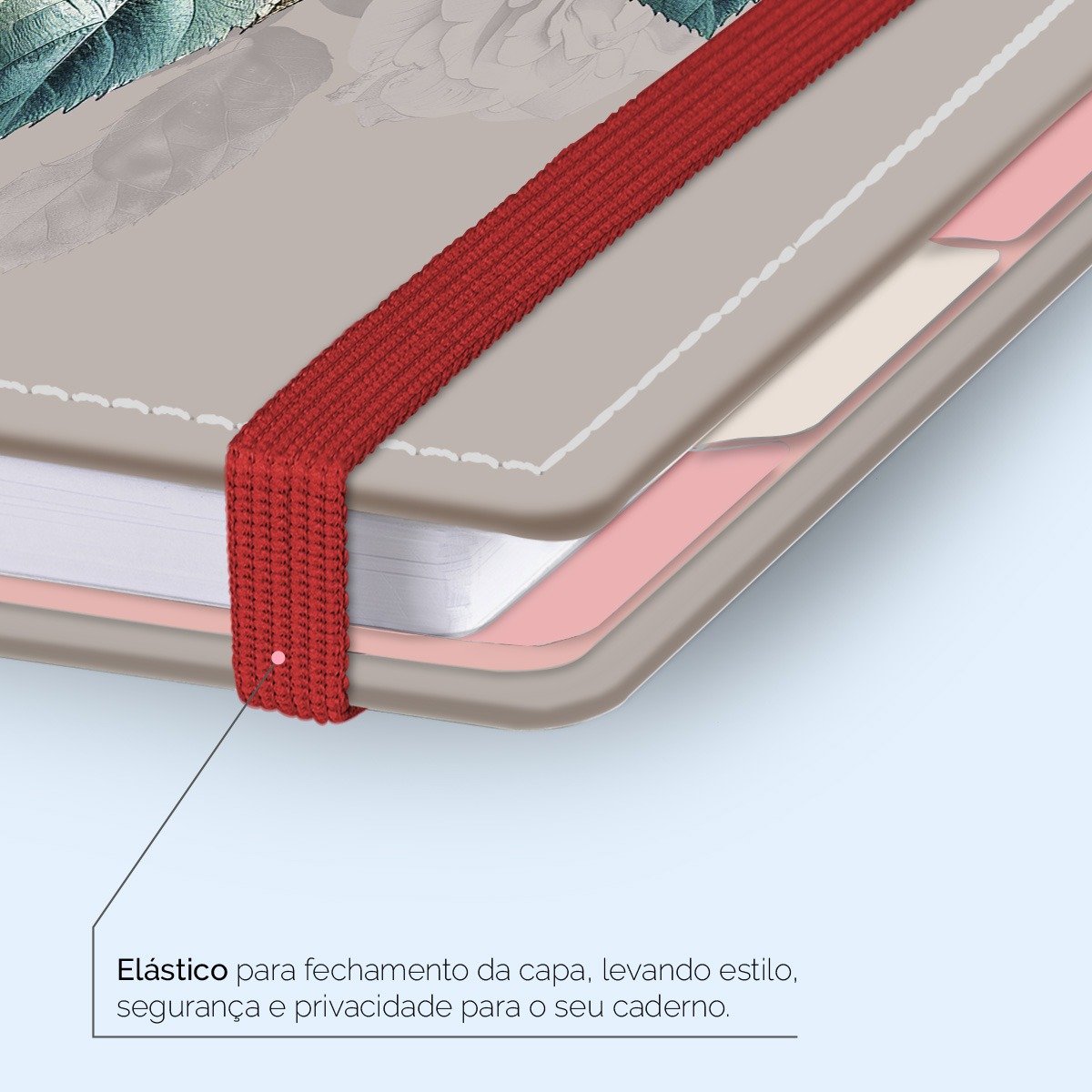 Elástico para fechamento da capa do caderno.
