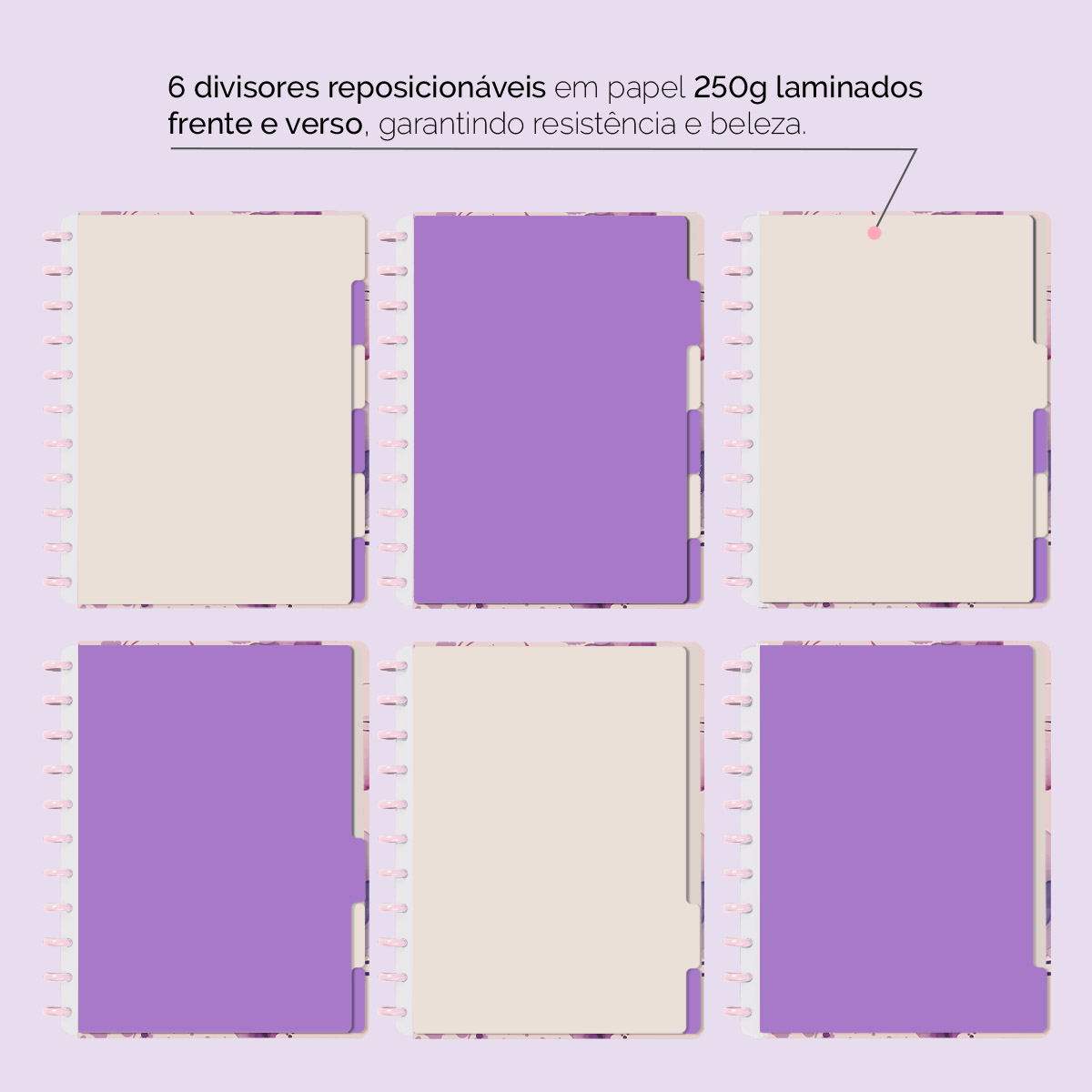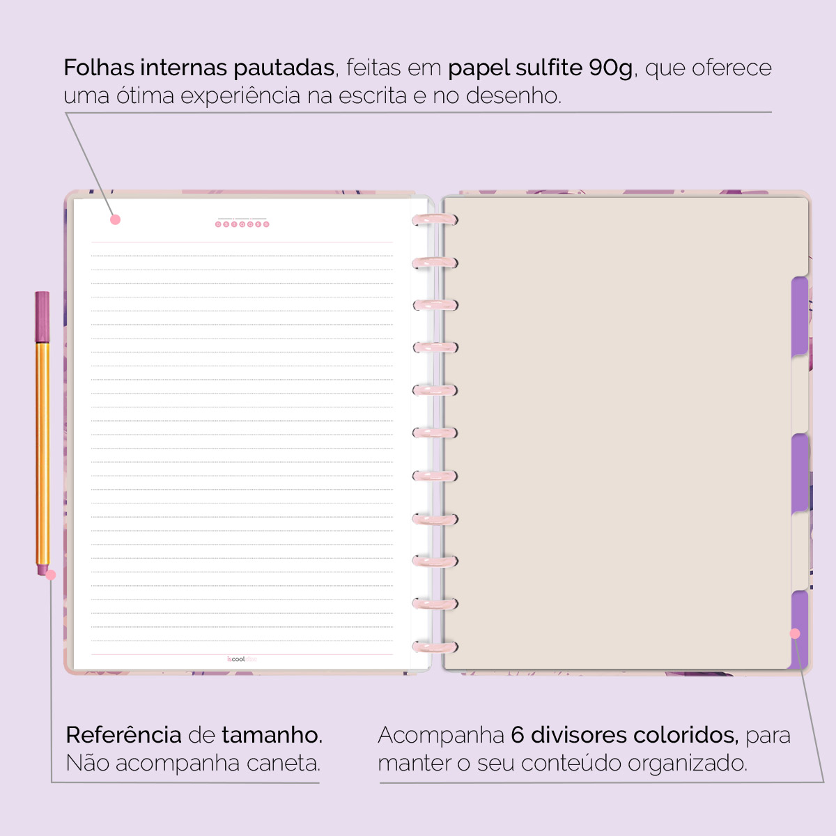 A capa é dura com impressão digital de alta definição, acompanha 6 lindas divisórias que você pode colocar em qualquer local do caderno, funcionando como o guia perfeito para sua organização.