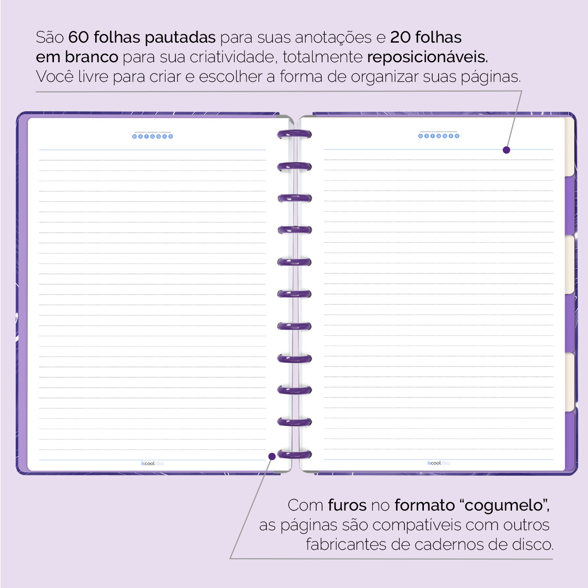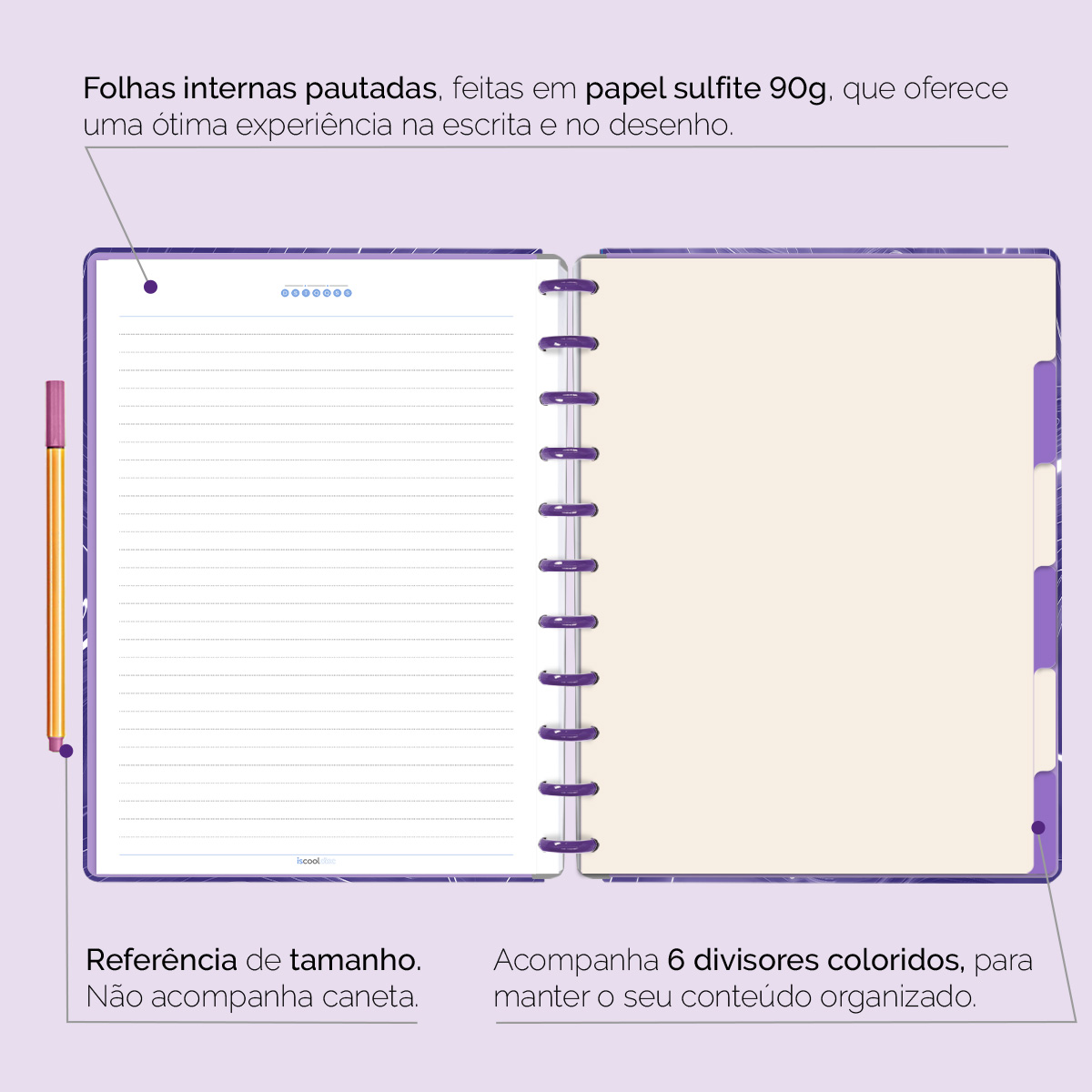A capa é dura com impressão digital de alta definição, acompanha 6 lindas divisórias que você pode colocar em qualquer local do caderno, funcionando como o guia perfeito para sua organização.