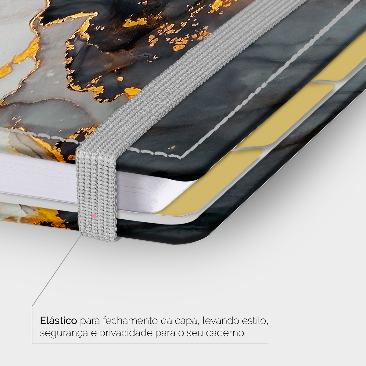 Elástico para fechamento da capa do caderno.