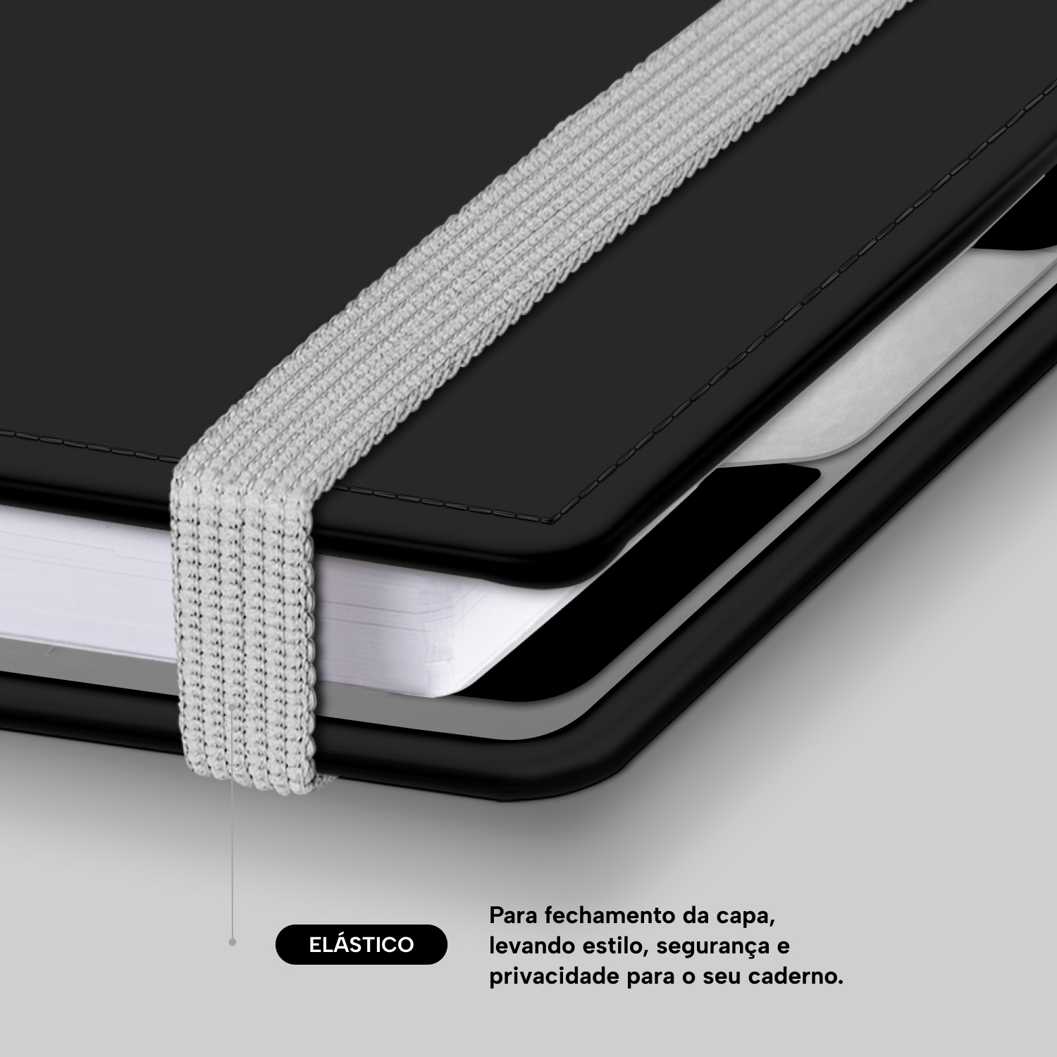 Elástico para fechamento da capa do caderno.