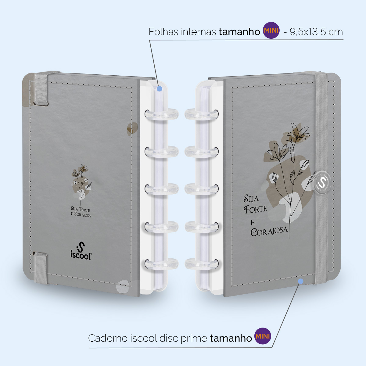 Além de tudo isso, o iscooldisc Prime Blackout, conta com detalhezinhos que fazem toda diferença: elástico para fechamento da capa, muito mais estilo e privacidade para suas anotações; bolsa plástica para guardar seus rascunhos, referências, lembretes, documentos e uma cartela de adesivos incríveis, para que você possa personalizar seu caderno do seu jeitinho!