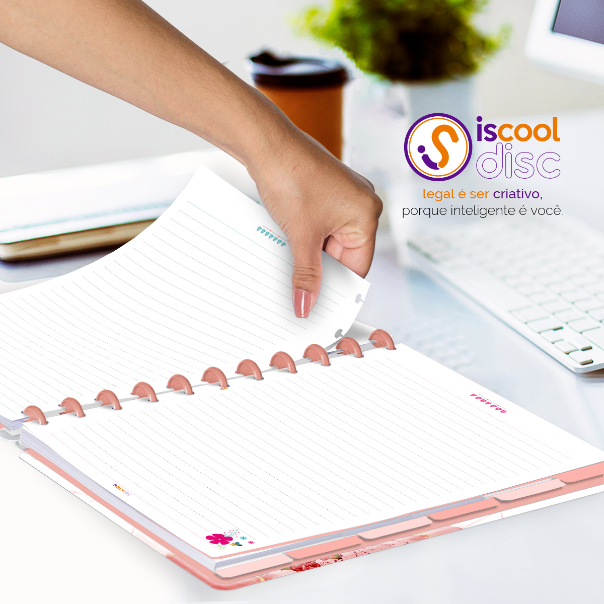 Um caderno totalmente customizável, no qual os elementos são reposicionáveis. Você pode montá-lo como preferir, deixando rolar solta toda sua criatividade.